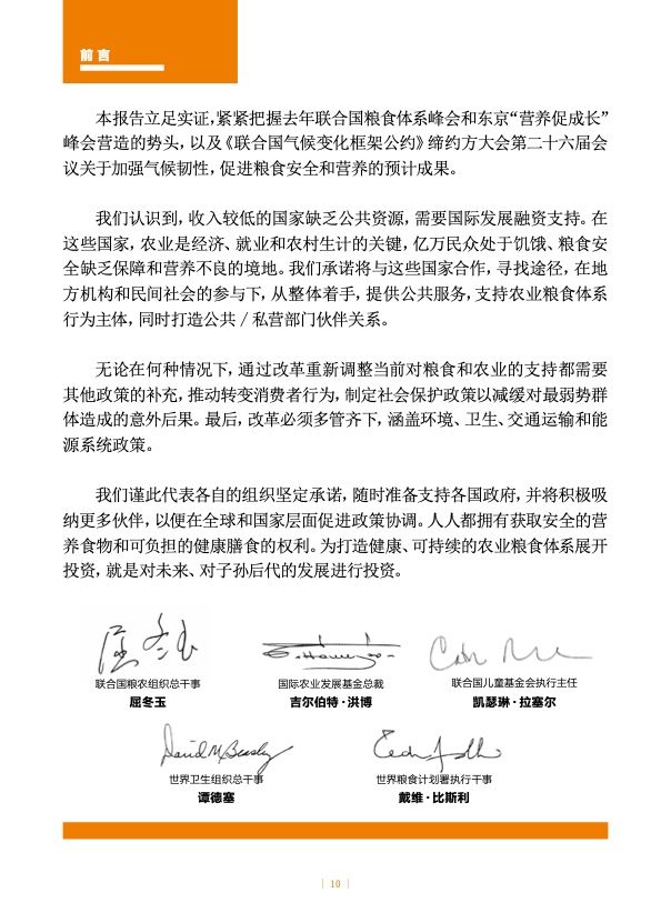 “本报告一再强调,冲突、极端气候和经济冲击,是造成粮食不安全和营养不良的主要因素。这些因素不断加剧,与日趋突出的不平等现象叠加共振,” 五家联合国机构负责人(粮农组织、农发基金、儿基会、粮食署和世卫组织)在今年的报告前言中写道,“关键问题不在于种种不利因素是否会持续出现,而是我们必须拿出更大的勇气,采取果断行动,增强抵御未来冲击的韧性。”