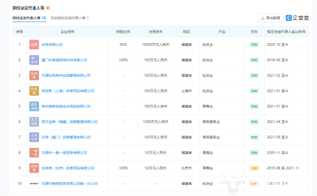 企查查APP显示,施俊棋目前拥担任10家公司法人,这些公司主要经营项目均为服装生产和贸易,与后秀有限公司有很大关联,用以支持后秀供应链和电商业务。