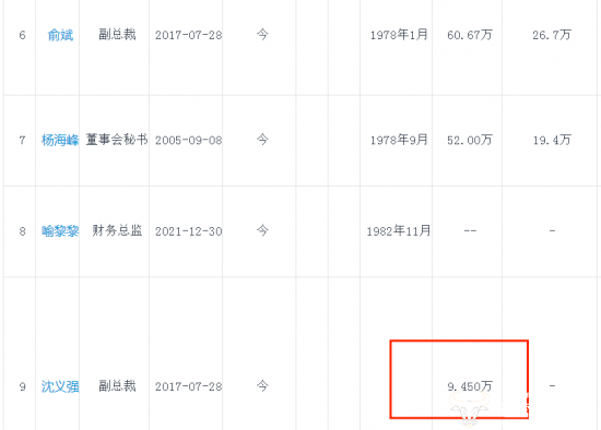 目前沈义强仍担任着公司副总裁一职。值得注意的是,据中商产业研究院数据显示,沈义强的薪酬仅为9.450万,而他的任职时间是2017年7月。
