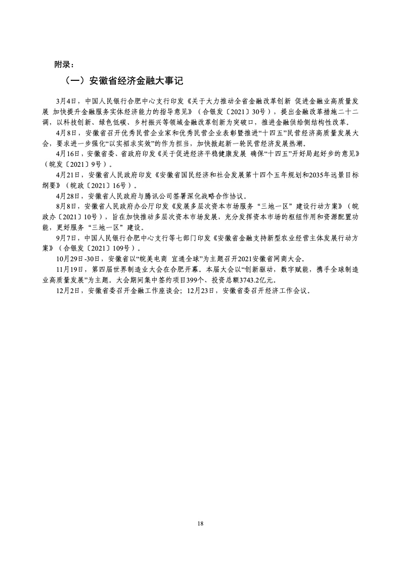 2021 年末,安徽省银行业资产总额 8.5 万 亿元,同比增长 9.9%。其中,法人银行业资产总 额 3.3 万亿元,同比增长 9.1%;占全省银行业总 资产的 39.4%,占比较上年末基本持平。