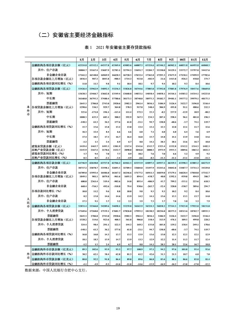 2021 年末,安徽省金融机构本外币贷款余额 5.9 万亿元,同比增长12.6%;较年初增加 6542.1 亿元。从期限结构看,中长期贷款增长加快。2021 年末企(事)业单位中长期贷款同比增长 17.1%,高于全部贷款增速4.5 个百分点,反映出经济复苏动力增强,企业生产投资意愿回升。从信贷投向看,2021 年末全省普惠小微企业贷款、涉农贷款、制造业贷款同比分别增长22.8%、13.5%、13.1%,分别高于各项贷款增速10.2 个、0.9 个、0.5 个百分点。
