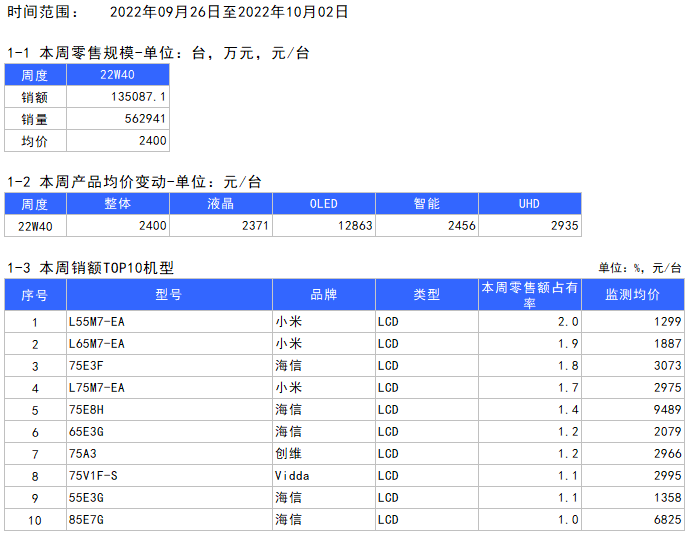 今天,分享一篇2022年彩电电商周度数据报告--W40,希望以下2022年彩电电商周度数据报告--W40的内容对您有用。