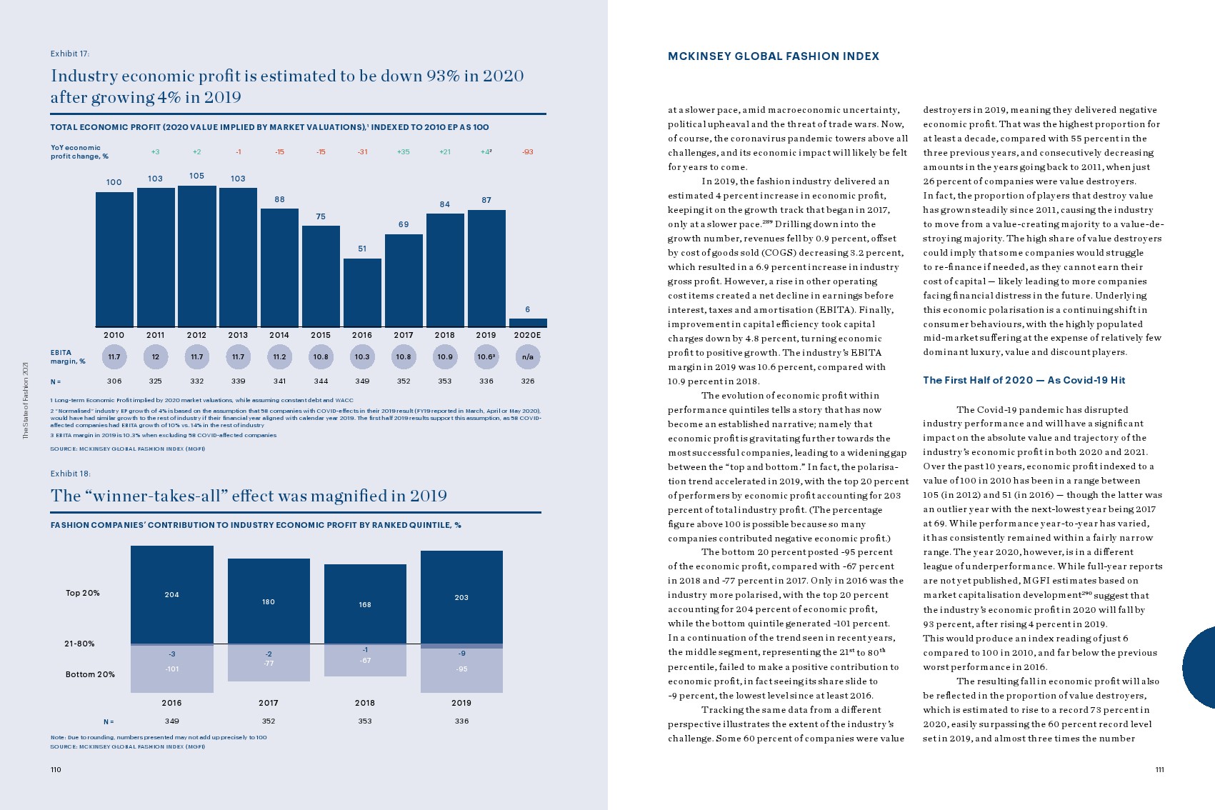 根据麦肯锡全球时装指数,在2019年增长4%之后,90%的时装公司将在2020年面临利润下滑的挑战。鉴于持续的不确定性,我们对明年行业表现的预测主要集中在两种情况下: