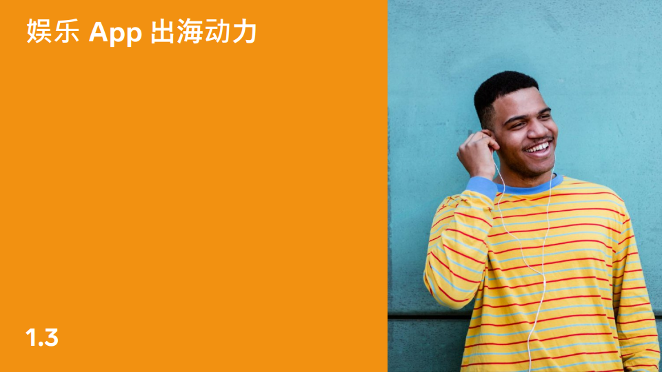 居家隔离带来了更长的用户时长,同时培养了用户生活习惯的线上化迁移,消费者正在更多使用流媒体服务,同时,全球约会市场表现出强劲增长1。同时,国内娱乐类 App 成熟的生态为出海提供充足资源储量。
