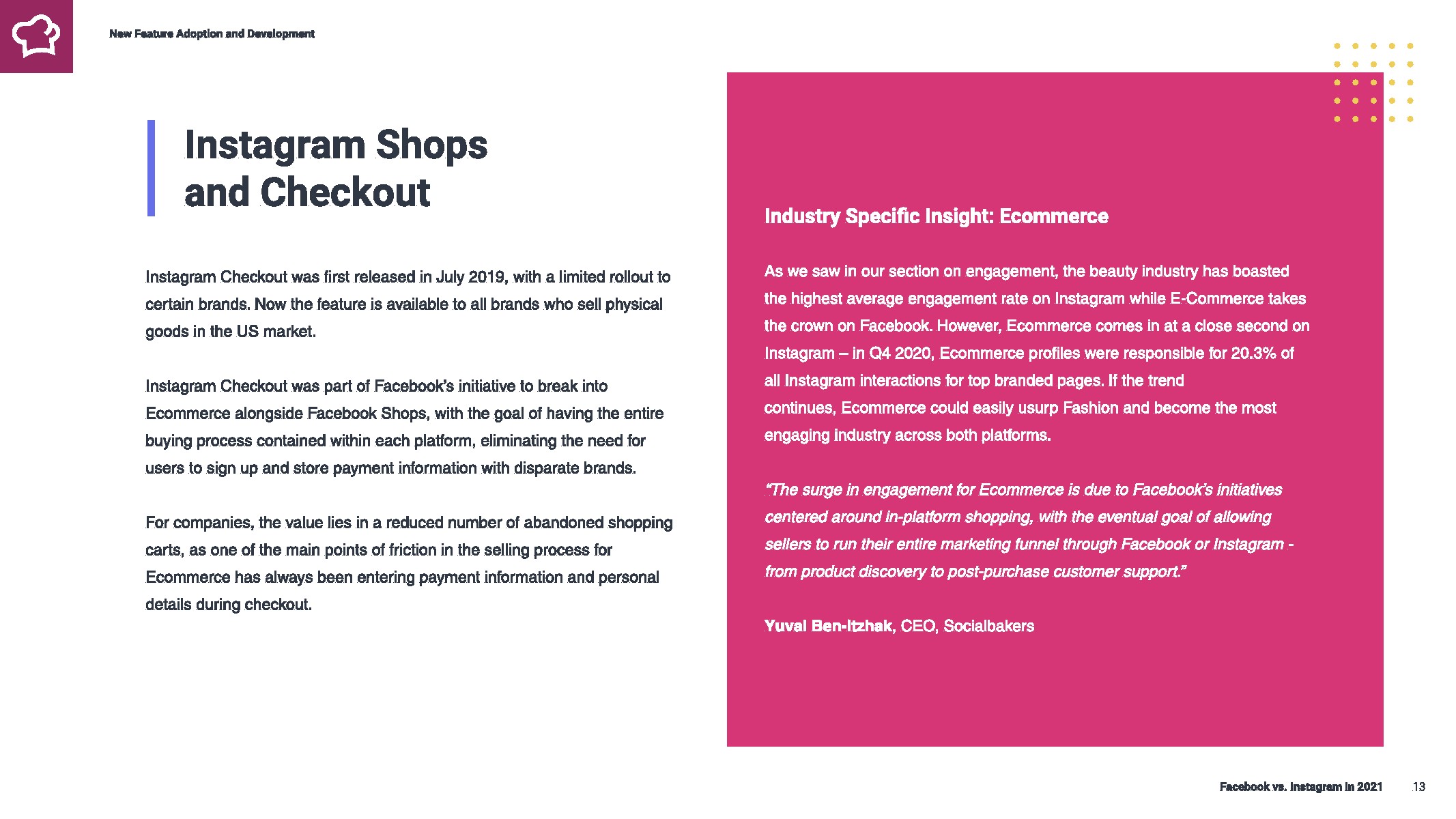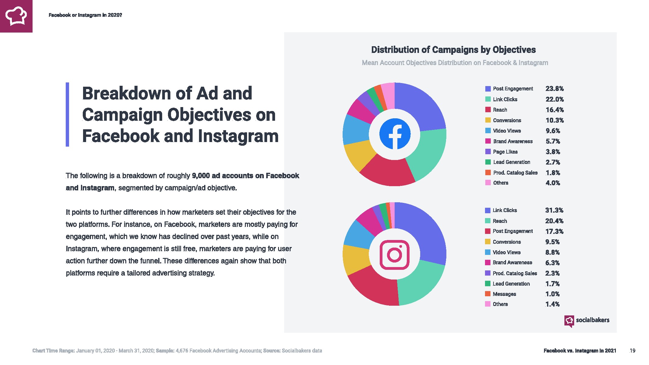 2020年第四季度,Instagram的受众规模比Facebook的受众规模高39%。尽管Instagram在参与度和受众规模方面领先,但各品牌仍在Facebook上发布更多信息。