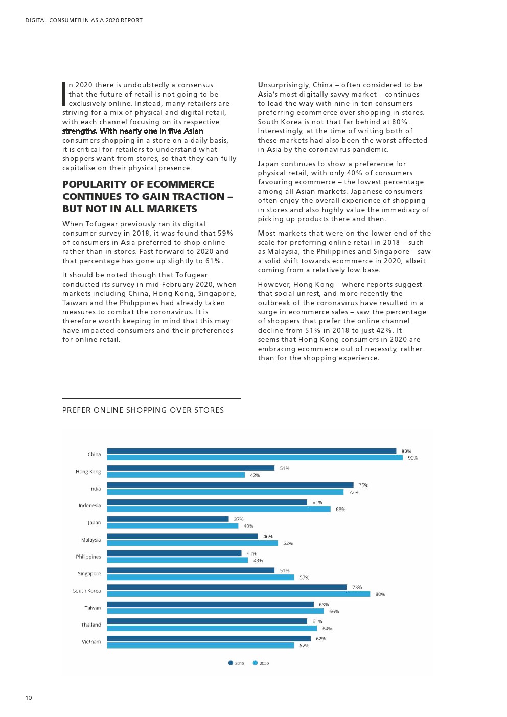 Tofugear发布了“2020年亚洲网络消费者报告”。大多数亚洲消费者(61%)喜欢网上购物而不是在商店购物。尽管购物者仍会定期光顾商店,主要是为了立即购买产品和方便。快闪店(Pop-up Store)则吸引了年轻的Z世代和千禧一代消费者。