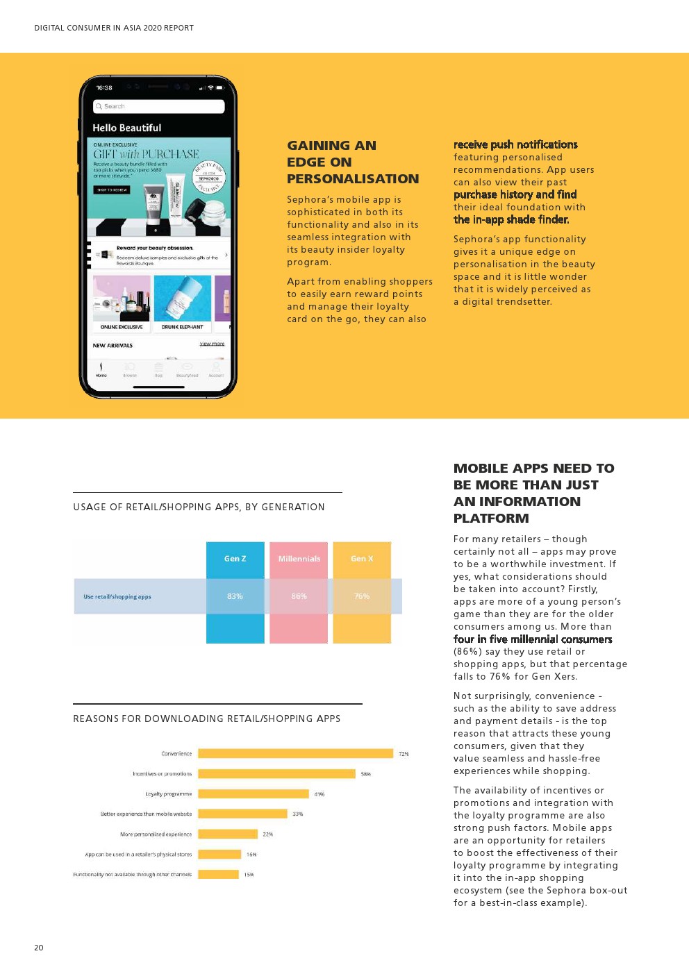 20%的消费者对自己喜欢的品牌有绝对的忠诚度。虽然金钱奖励会提高忠诚度,但忠诚计划也很受重视。在个性化方面,亚洲消费者最容易接受个性化促销、产品推荐和商品。