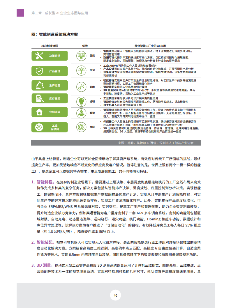 成长型 AI 企业想在激烈的竞争环境下充分发挥优势,求得生存与发展,必须重视不同阶段企业战略的规划及实施,比如先垂直渗透后向上发展,精于技术强于场景方案。成长型 AI 企业是搭建技术产品与场景落地最重要的桥梁,如何实现场景落地是每家成长型 AI 企业所面临最大的挑战,如何进一步提升市场竞争力,制定合理的运营策略是关键。同时,如何把握住多元化的融资渠道,也是成长型AI企业需要聚焦思考的重点。