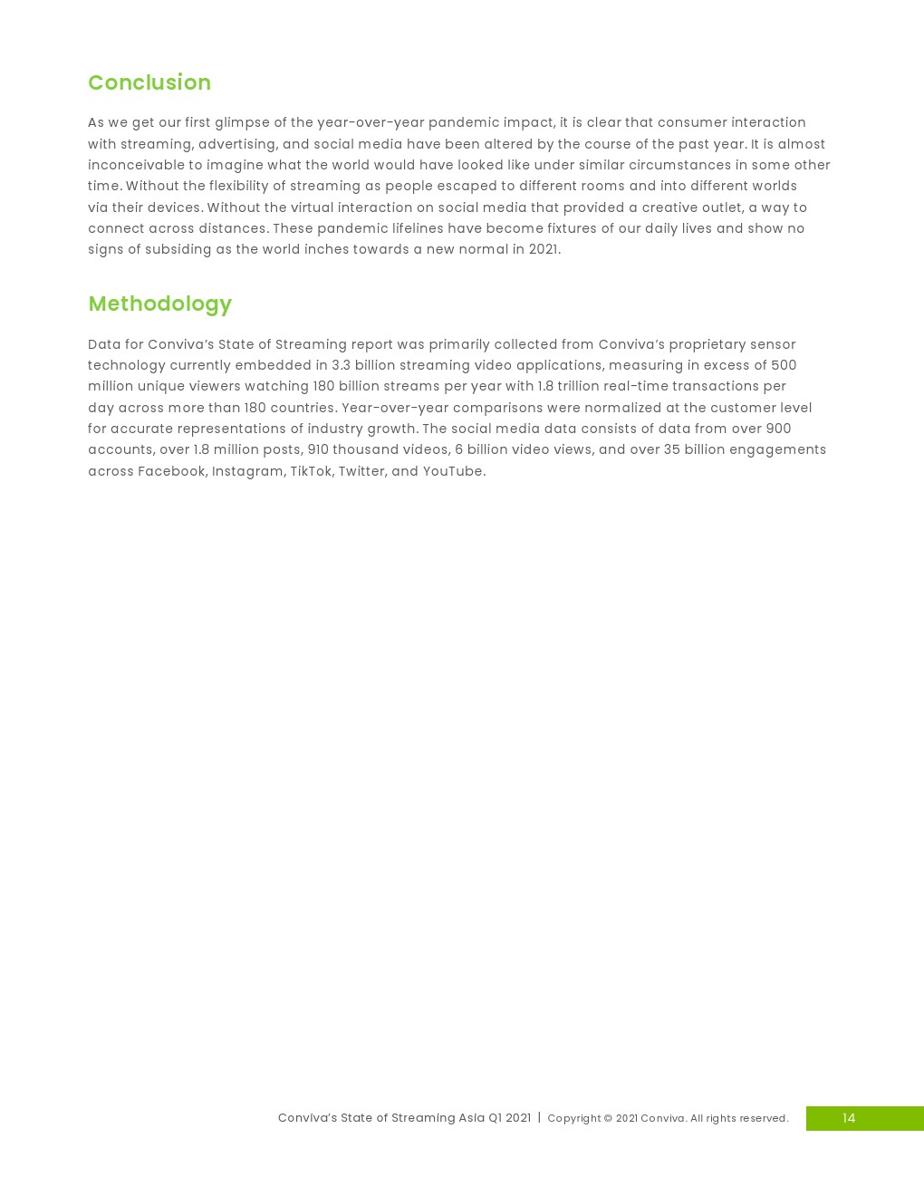 2021年开始时,人们对回归常态持乐观态度,随之而来的是流媒体的新常态,即人们在较小的移动设备上观看的节目越来越少,大屏幕占据了观看的主导地位。这是一种新的常态,社交投资是至高无上的,社交、流媒体和广告的强大融合已不容忽视。这是一种新的常态,观众可以在方便的时候观看节目,而不是按照常规收看直播节目。虽然许多趋势在2021年第一季度继续,但新兴行业出现了新的发展方向: