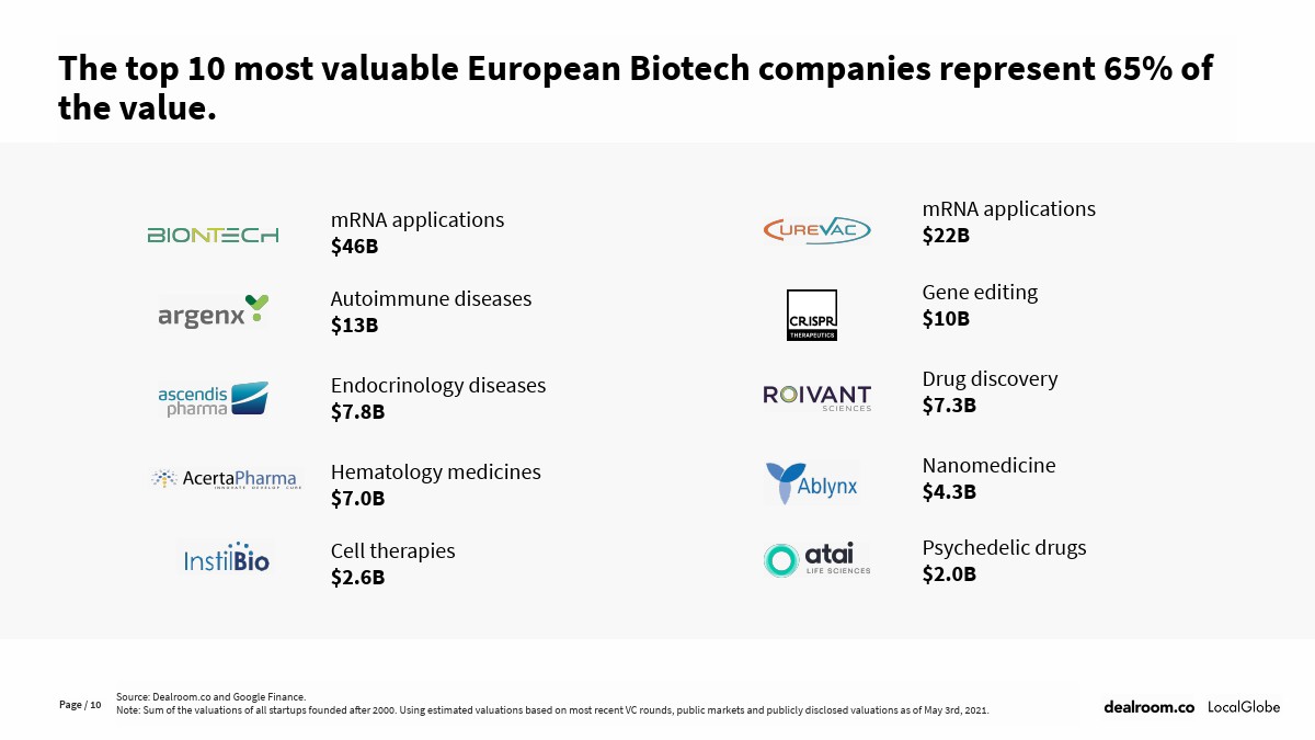 欧洲卫生和生物技术初创企业目前的总价值为2320亿美元,全球健康和生物技术投资今年有望超过1000亿美元。