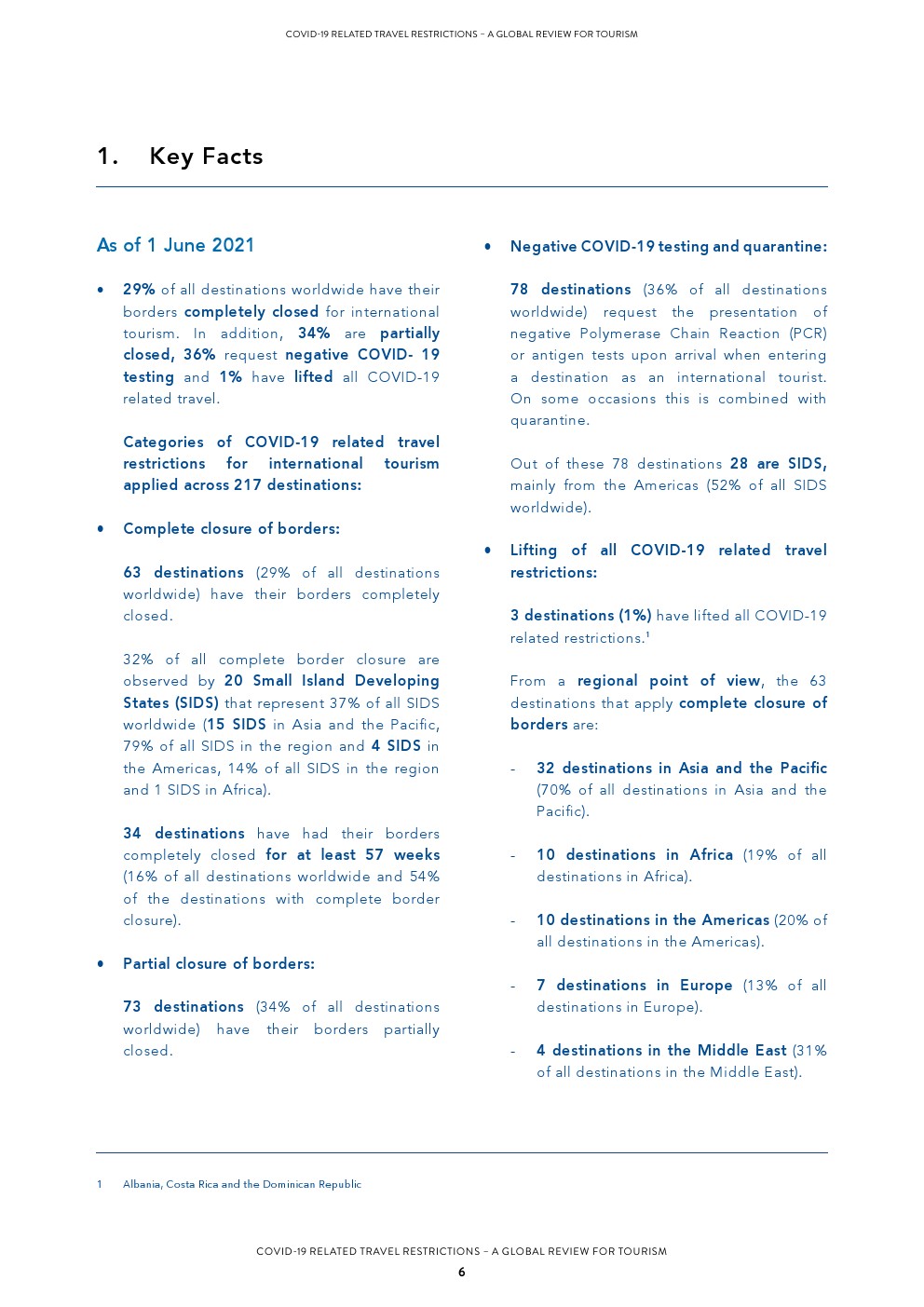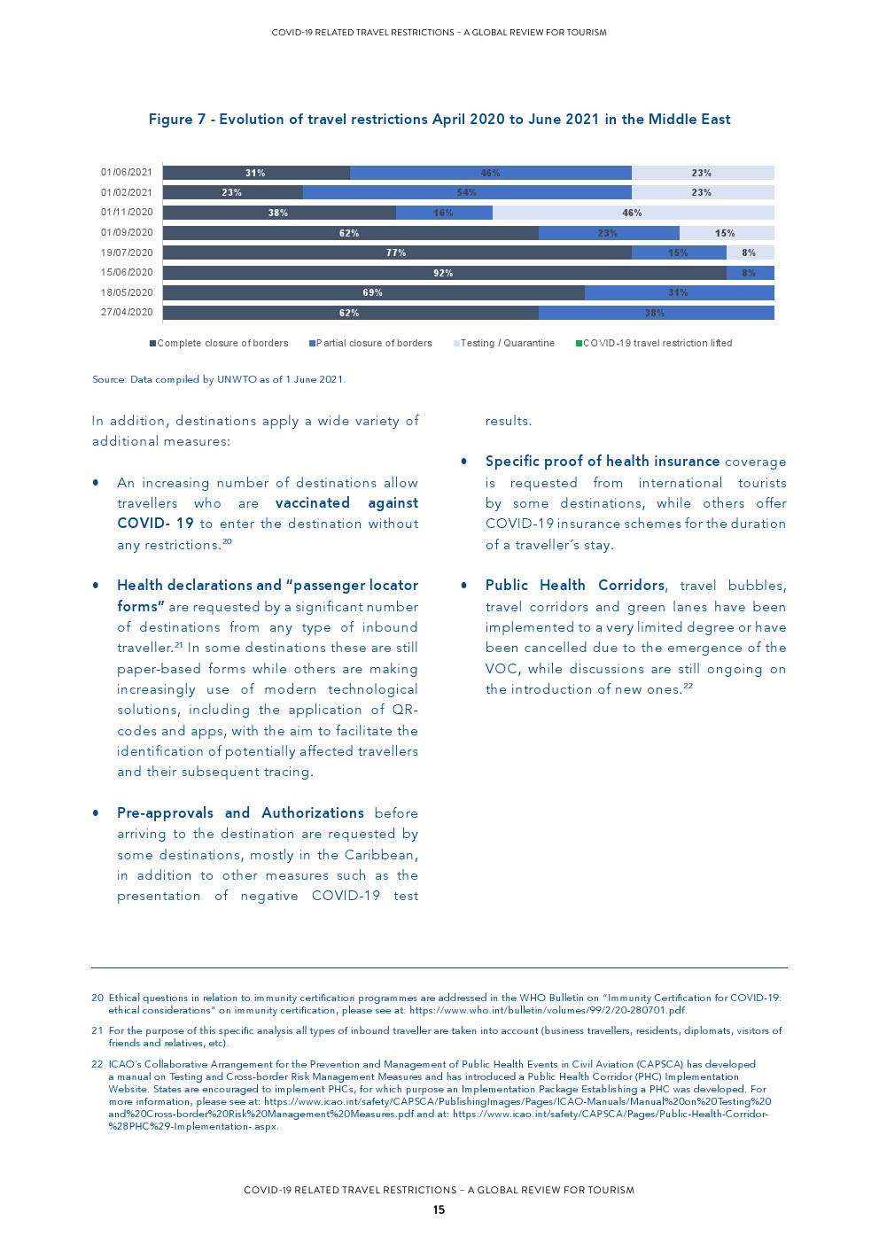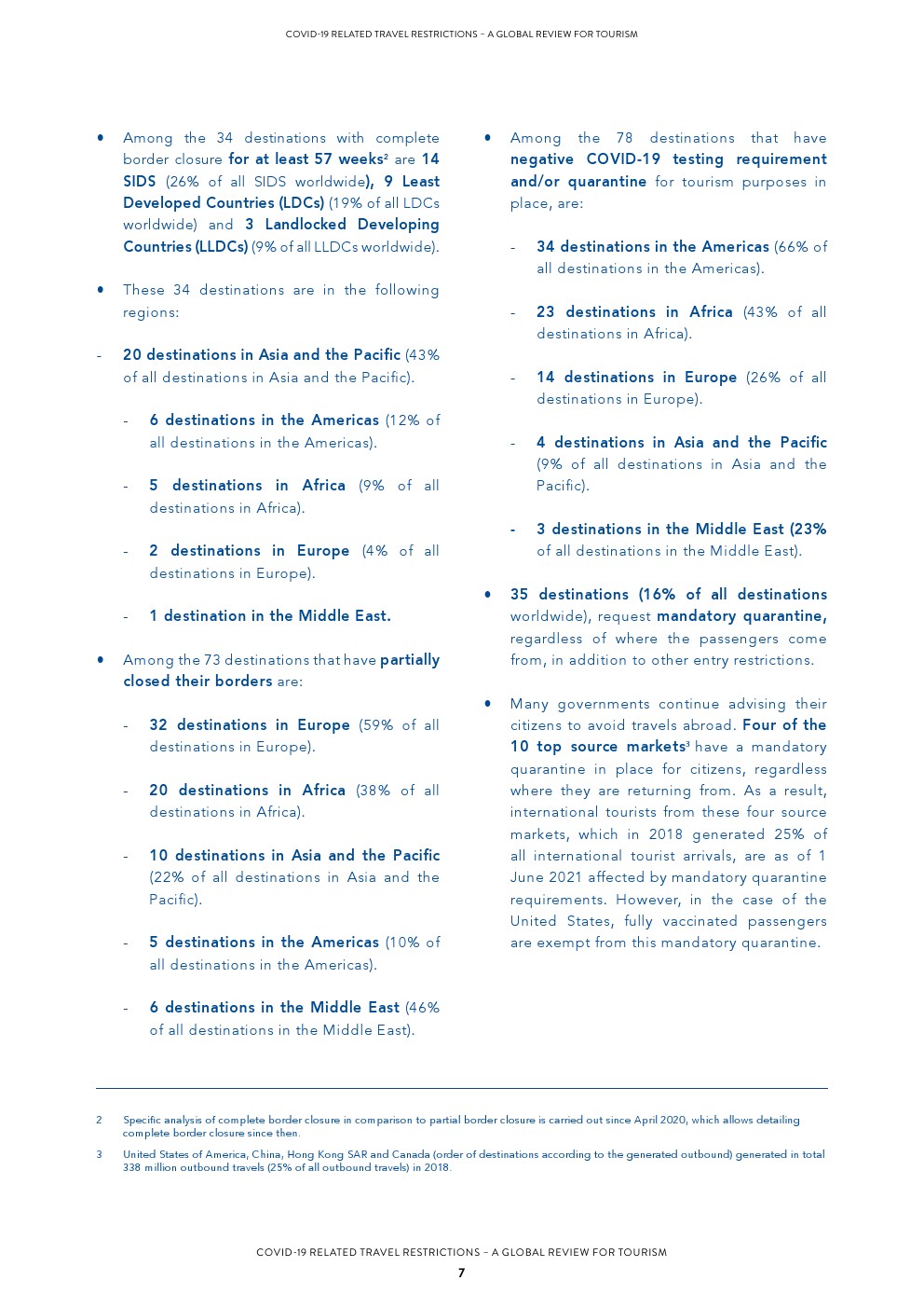 世界旅游组织发布了“2021年7月全球旅游报告—COVID – 19 相关旅行限制”。自世卫组织于2020年1月31日宣布新冠疫情为国际性公共卫生突发事件(PHEIC)。自2020年3月11日宣布疫情以来,各国政府采取的公共卫生措施对社会、经济和旅游业造成了前所未有的影响。