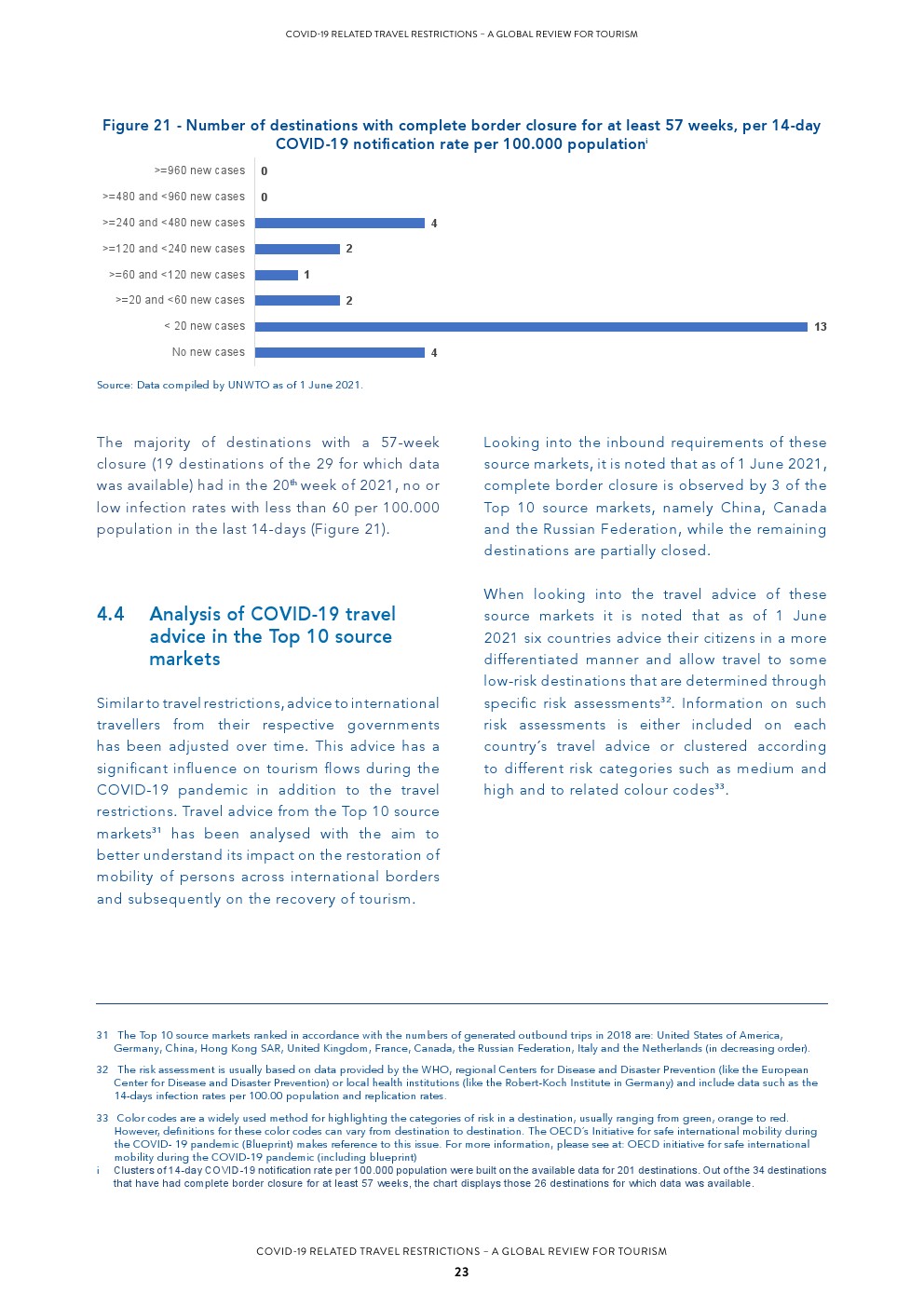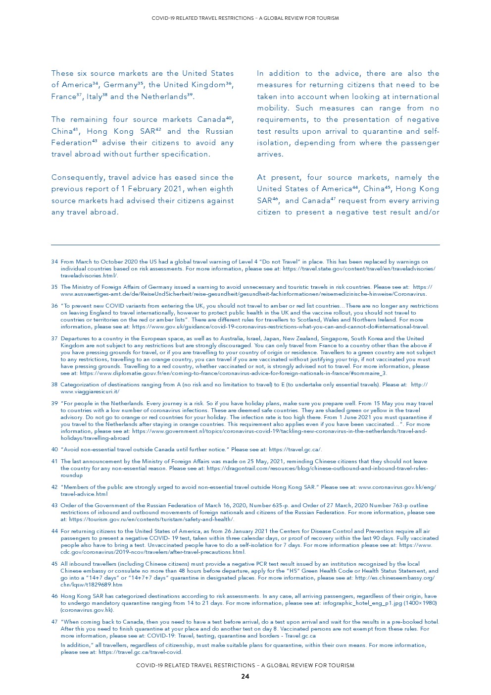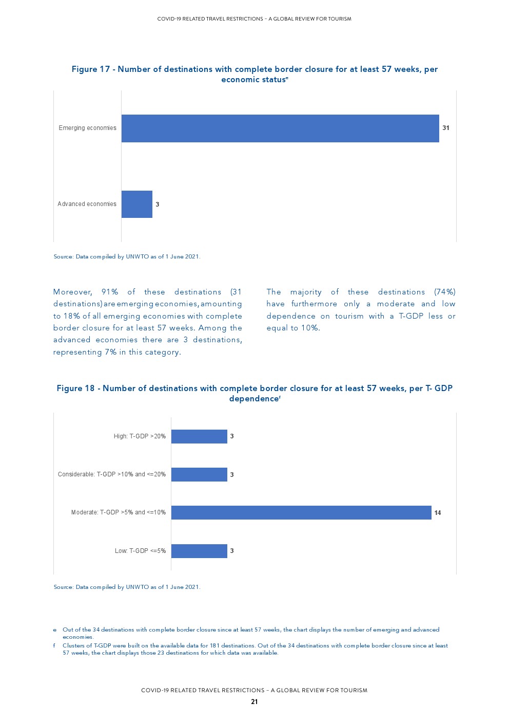 正在进行的疫苗接种进展正日益导致一种更具差异性的方法,即单独考虑接种疫苗的消费者。这一特殊发展将进一步影响旅行限制的放宽。此外,目前正在开发的各种旅行通行证预计将有助于恢复国际流动性。但是,鉴于旅游的广泛需求和进一步调整的不可预测性,目前旅行限制仍然是旅游业务全面恢复的一个严重挑战。