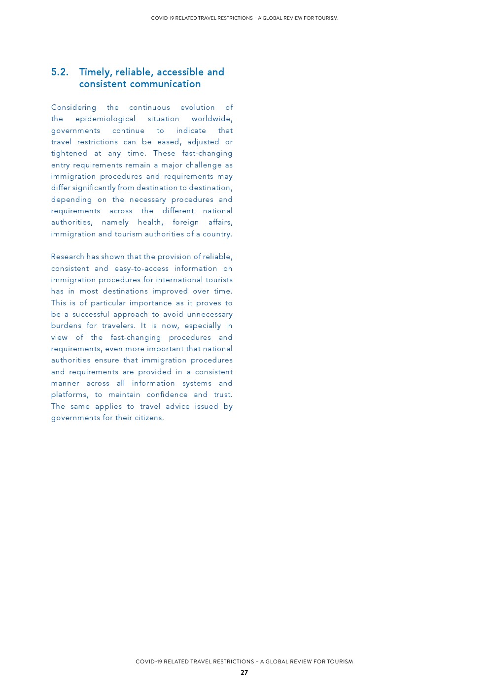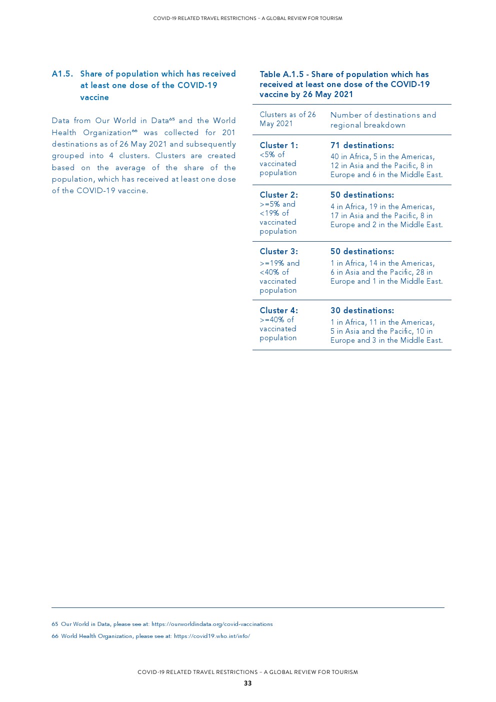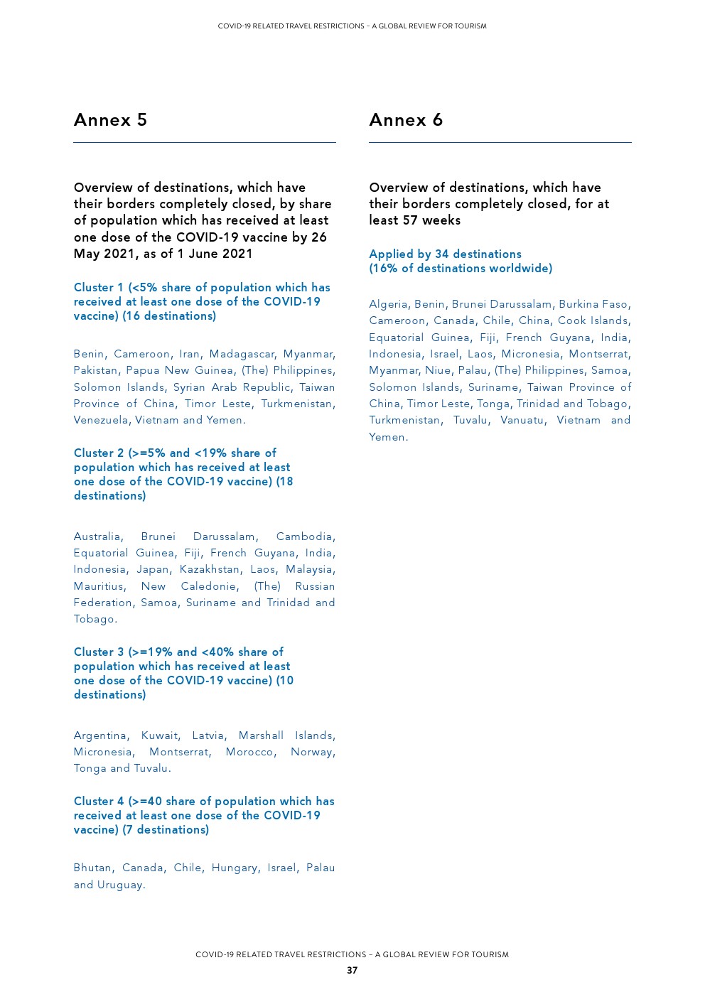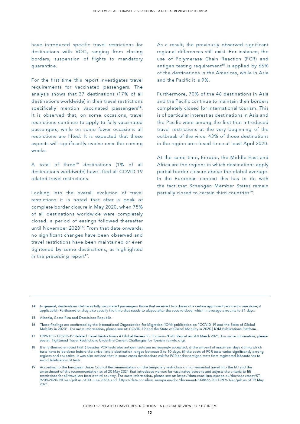 正在进行的疫苗接种进展正日益导致一种更具差异性的方法,即单独考虑接种疫苗的消费者。这一特殊发展将进一步影响旅行限制的放宽。此外,目前正在开发的各种旅行通行证预计将有助于恢复国际流动性。但是,鉴于旅游的广泛需求和进一步调整的不可预测性,目前旅行限制仍然是旅游业务全面恢复的一个严重挑战。