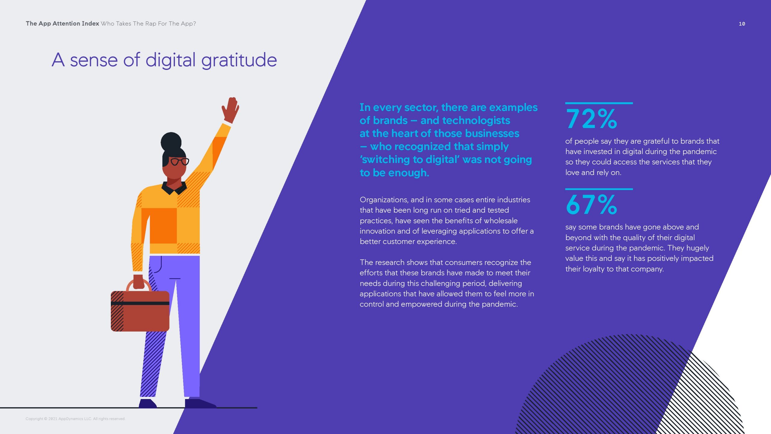 在新冠大流行期间,人们比以往任何时候都更加依赖数字服务。根据AppDynamics的一份报告,超过8/10的美国消费者(84%)说在新冠大流行期间数字服务对他们的生活产生了积极影响,部分原因是数字服务使一些活动更容易获得(83%)。