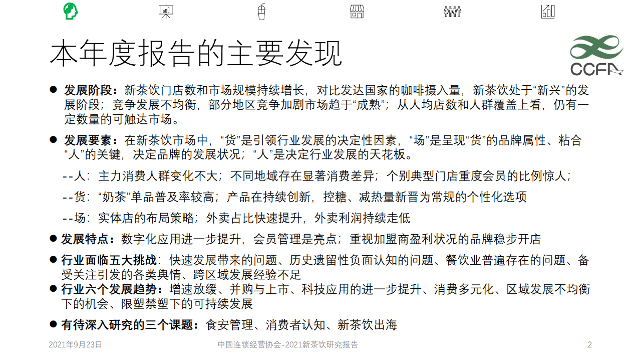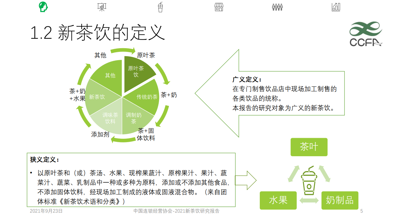 《报告》从5个维度去阐述了新茶饮的含义,分别为新食材、新口味、新技术、新人类、新文化传播。