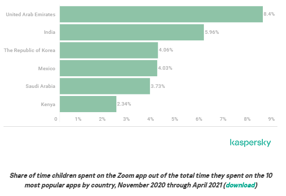 按地区划分的数据显示,视频平台最频繁的访问者是南亚的儿童,占53.19%。该地区此类警报比例比独联体高出10个百分点以上,独联体的警报比例为41.09%,儿童在电脑上观看视频的频率最低。
