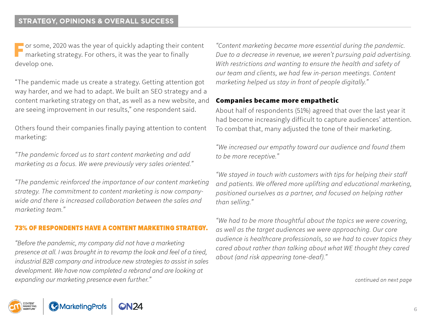 大约83%的B2B内容营销人员表示,他们企业的内容营销今年至少取得了一定的成功;74%的受访者表示,他们的内容的价值是取得成功的一个因素。内容营销研究所(CMI)、MarketingProfs和ON24发布的最新B2B内容营销报告介绍了B2B营销人员正在使用哪些类型的内容,以及哪些内容带来了最大的成功。