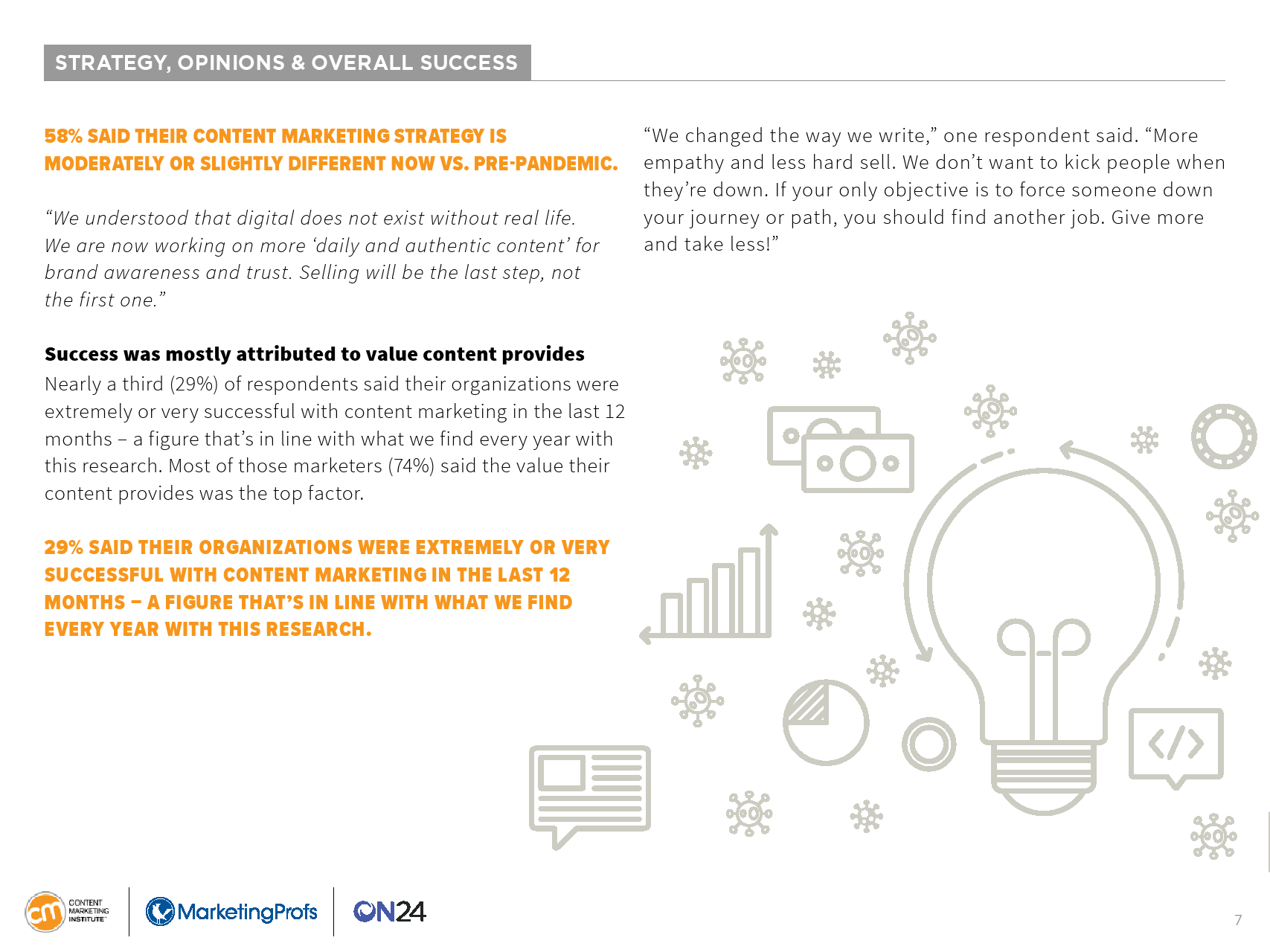 尽管大多数内容营销人员都在使用短文,但这些并不是最成功的内容类型。相反,58%的受访者表示,虚拟活动/网络研讨会/在线课程在过去12个月内取得了最好的效果。