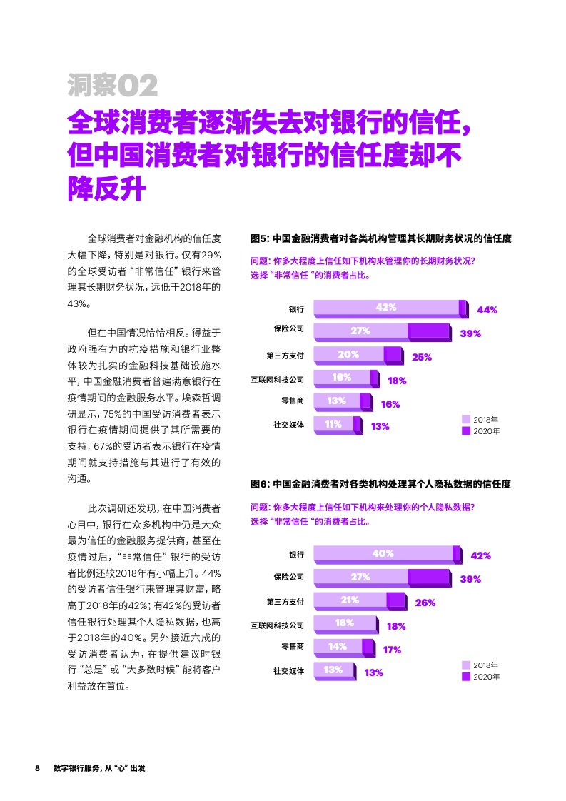 但面对银行的变化,金融消费者又是否买单?他们有怎样的反应和偏好呢?作为2018年同类调研的延续,埃森哲对全球超过4.7万名金融消费者展开调研,并发布了《2021全球及中国金融消费者调研报告》,揭示了金融消费者在经历疫情之后所看重的消费价值,以及他们对银行的需求变化。