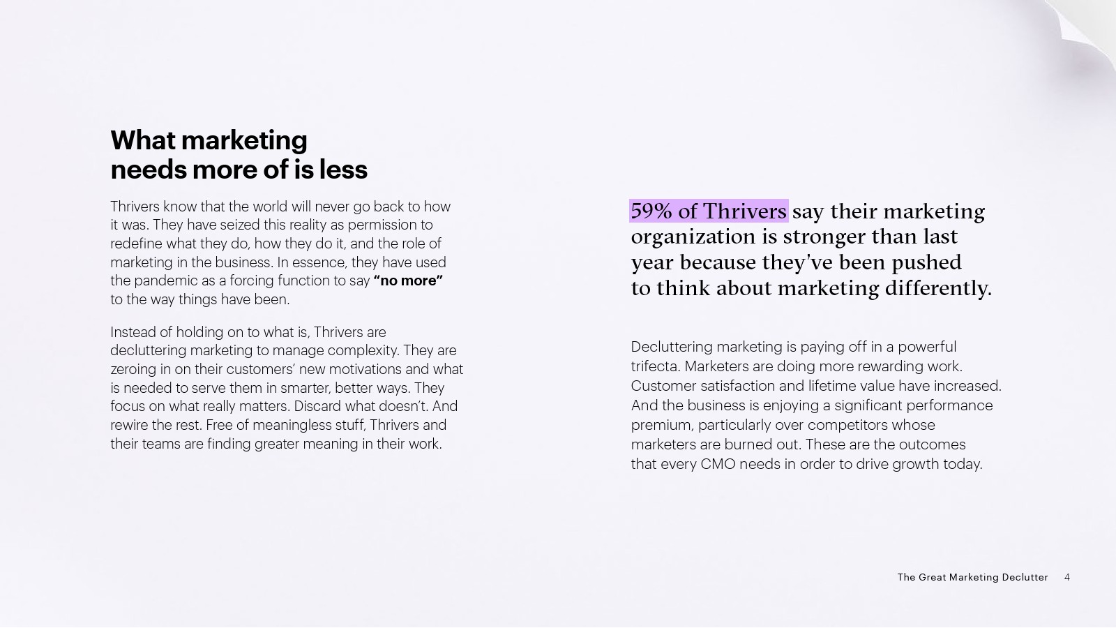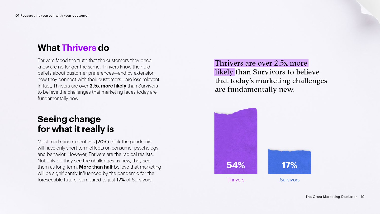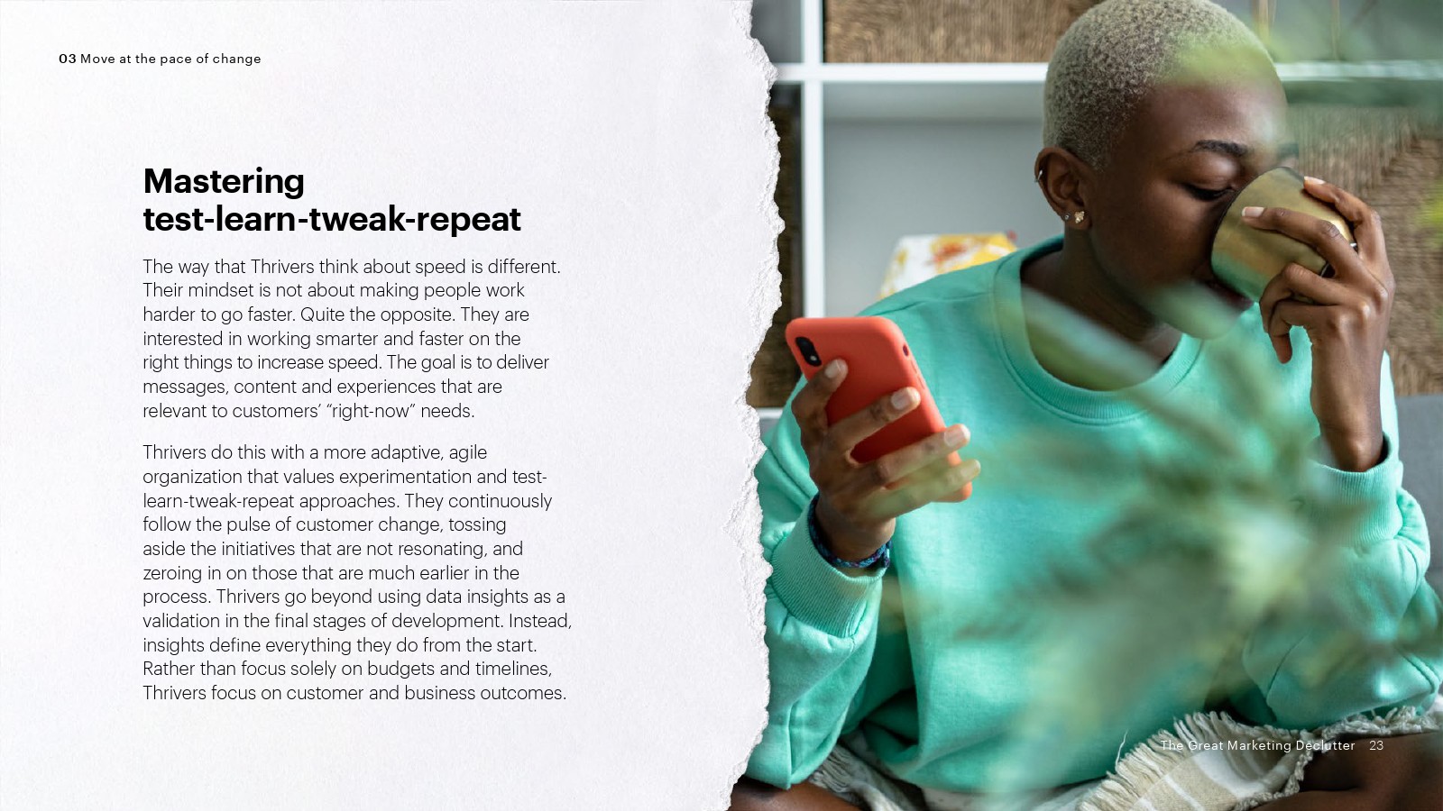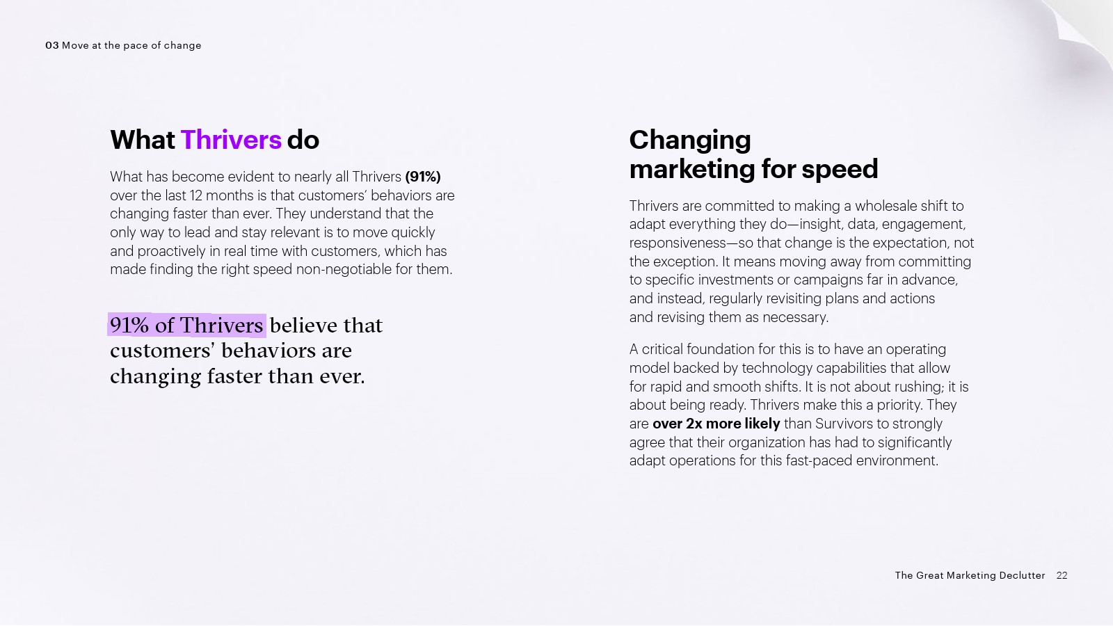 3、与时俱进:绝大多数蓬勃发展者(91%)认为客户的行为变化比以往任何时候都快。因此,他们的目标是提供与客户实时需求相关的信息、内容和体验。