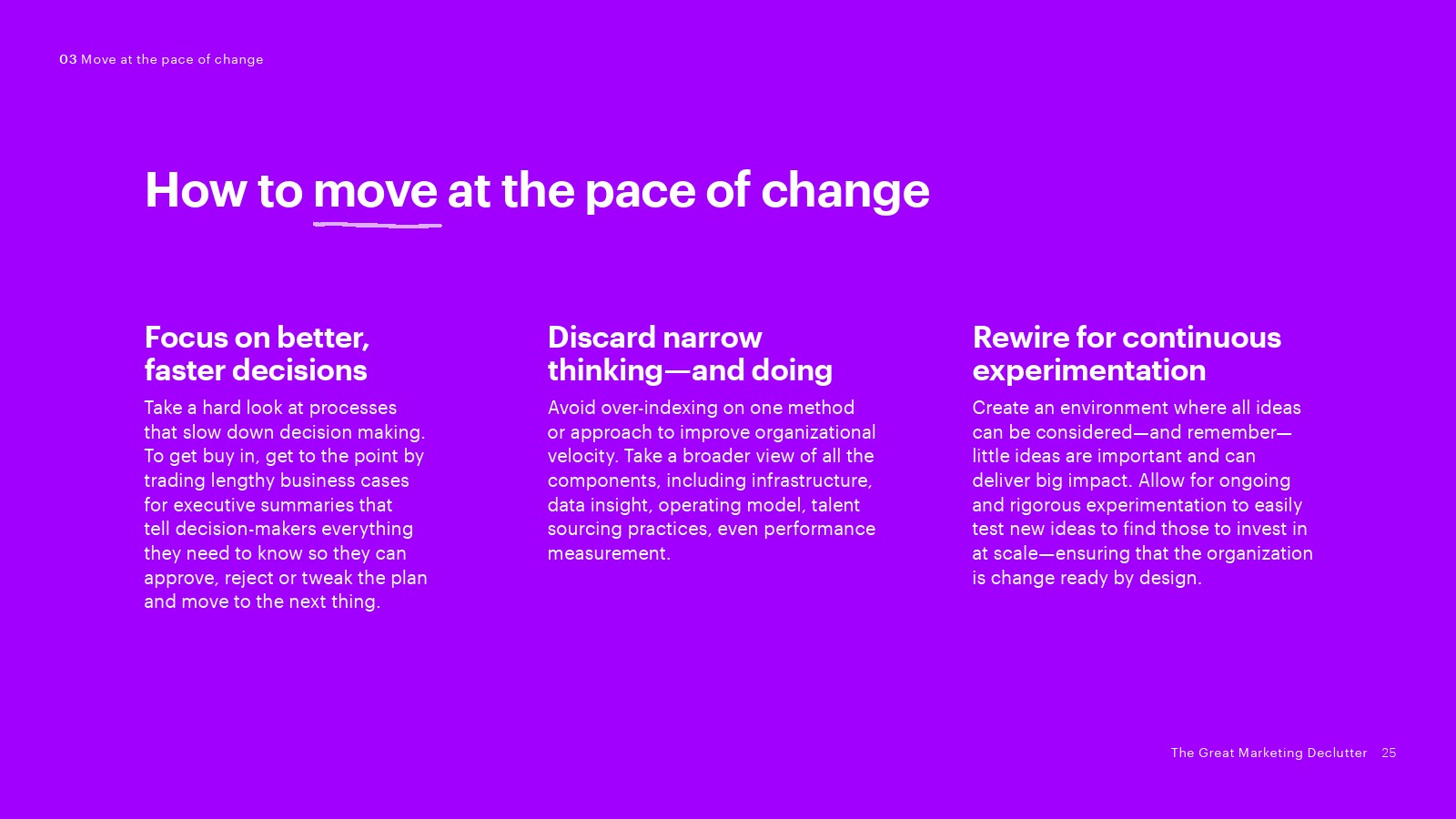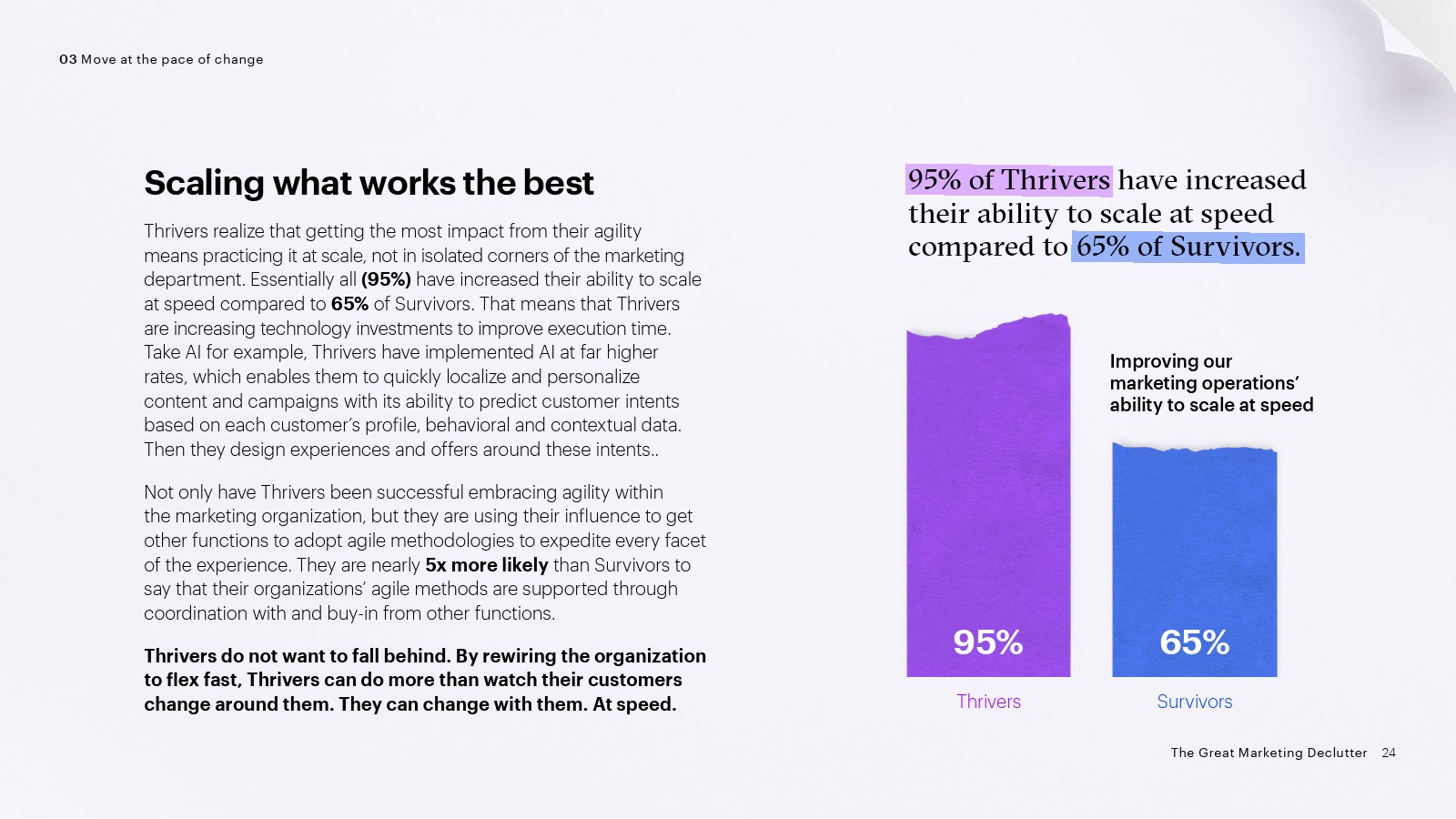 4、找出谁都不想做的事情:由于触点、技术、监管问题和合作伙伴的爆炸式增长,营销生态系统变得越来越复杂。蓬勃发展者通过过程自动化和工业化运营战胜了复杂性。