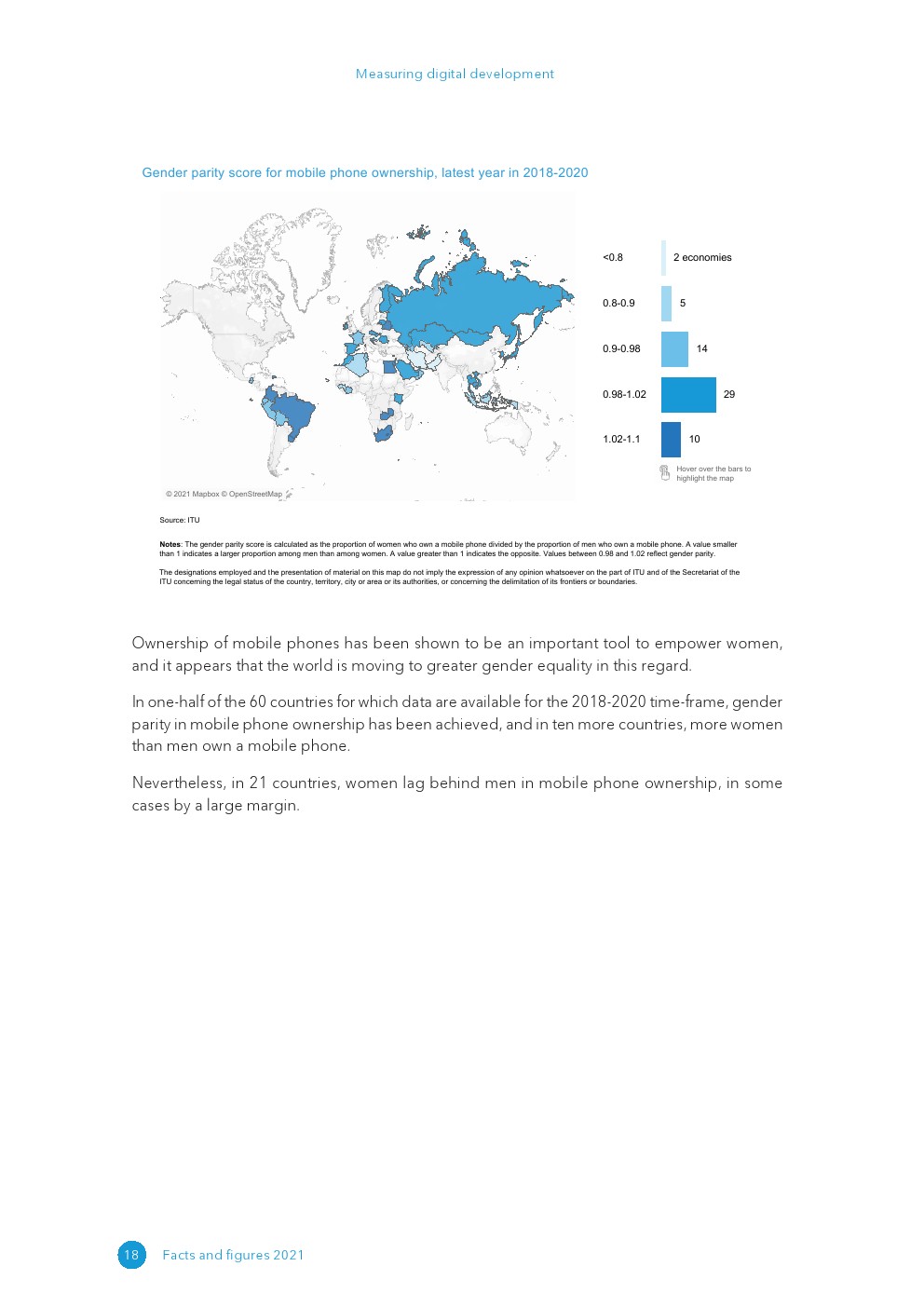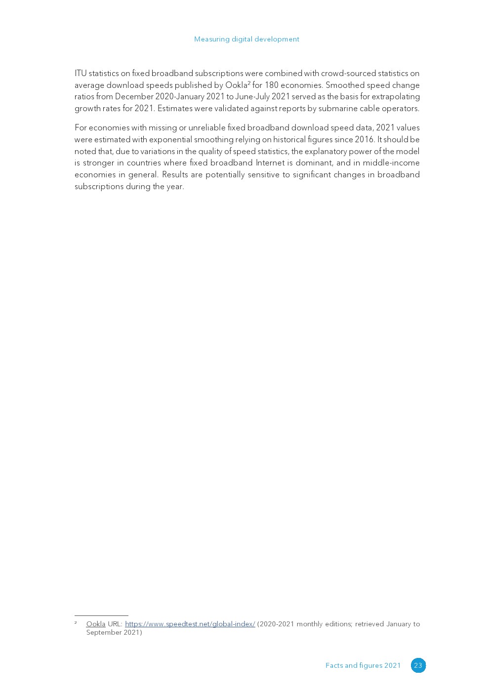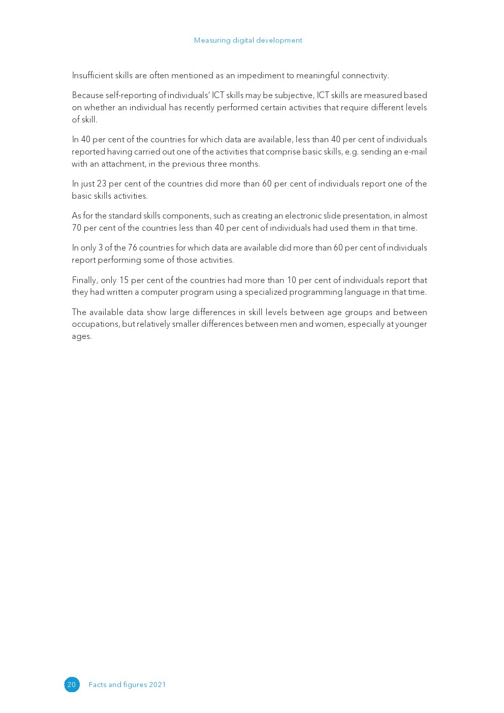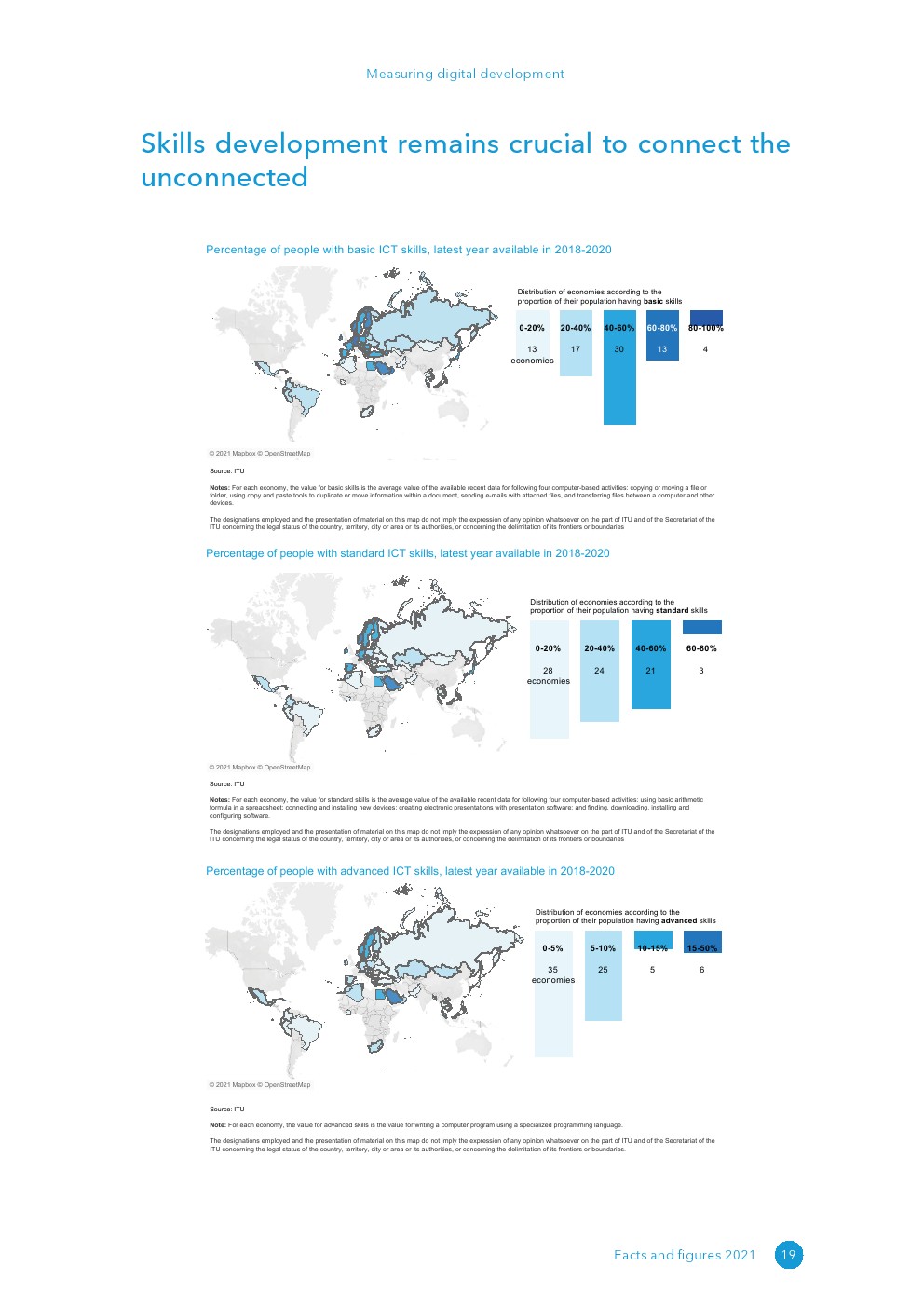 这种增长差异导致世界上联网最多和联网最少的国家之间的差距略微缩小。例如,发达经济体与最不发达国家之间的差距从2017年的66个百分点下降到2021年的63个百分点。