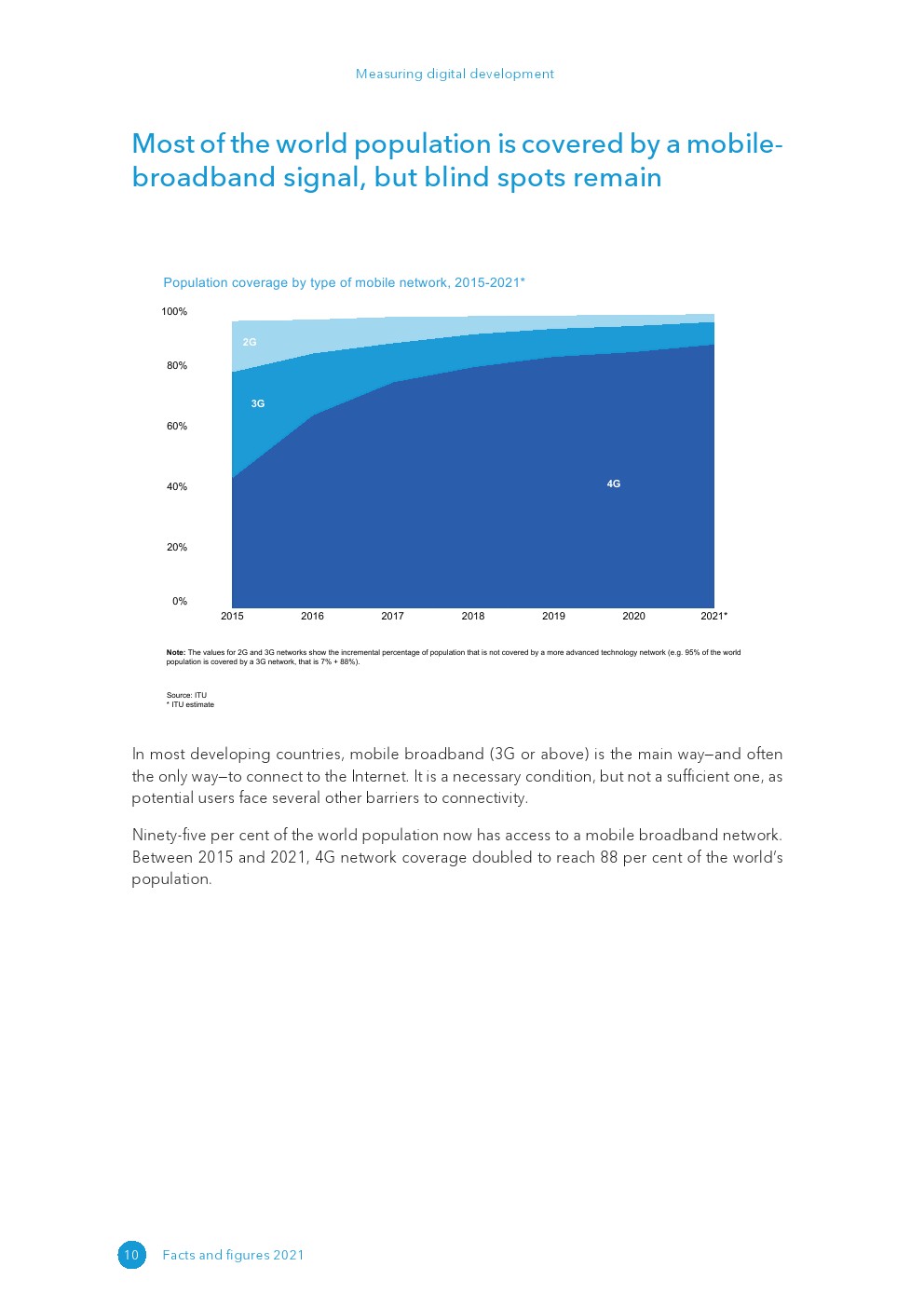 尽管如此,这意味着地球上约有29亿人仍处于离线状态,其中96%生活在发展中国家。那些仍然没有联网的人面临多重障碍,包括缺少接入:大约3.9亿人甚至没有移动宽带信号覆盖。