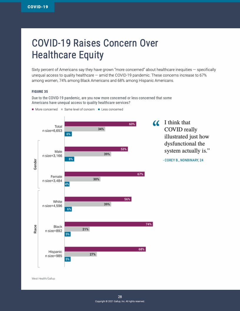 60%的美国人报告说,这场大流行使他们担心获得优质医疗服务的机会更加不平等。