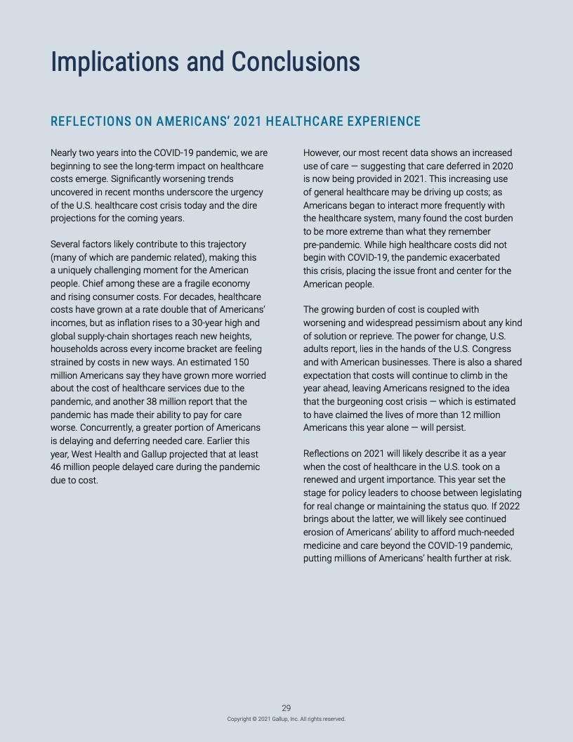 GALLUP发布了“2021年美国医疗保健报告”,主要发现包括: