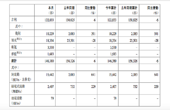 新浪科技讯 2月10日下午消息,吉利汽车在港交所发布公告称,2022年1月总销量为146380部,较去年同期减少约6%,主要受春节假期提前和各地零星疫情影响。