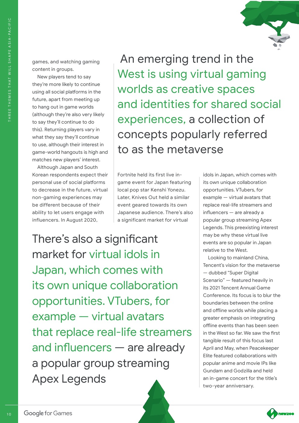 经济、监管要求、技术素养、互联网基础设施和可访问性的差异导致了多样化的亚太地区游戏格局。三个广泛的主题将亚太地区的市场联系起来,开发商可以利用这些主题实现增长。