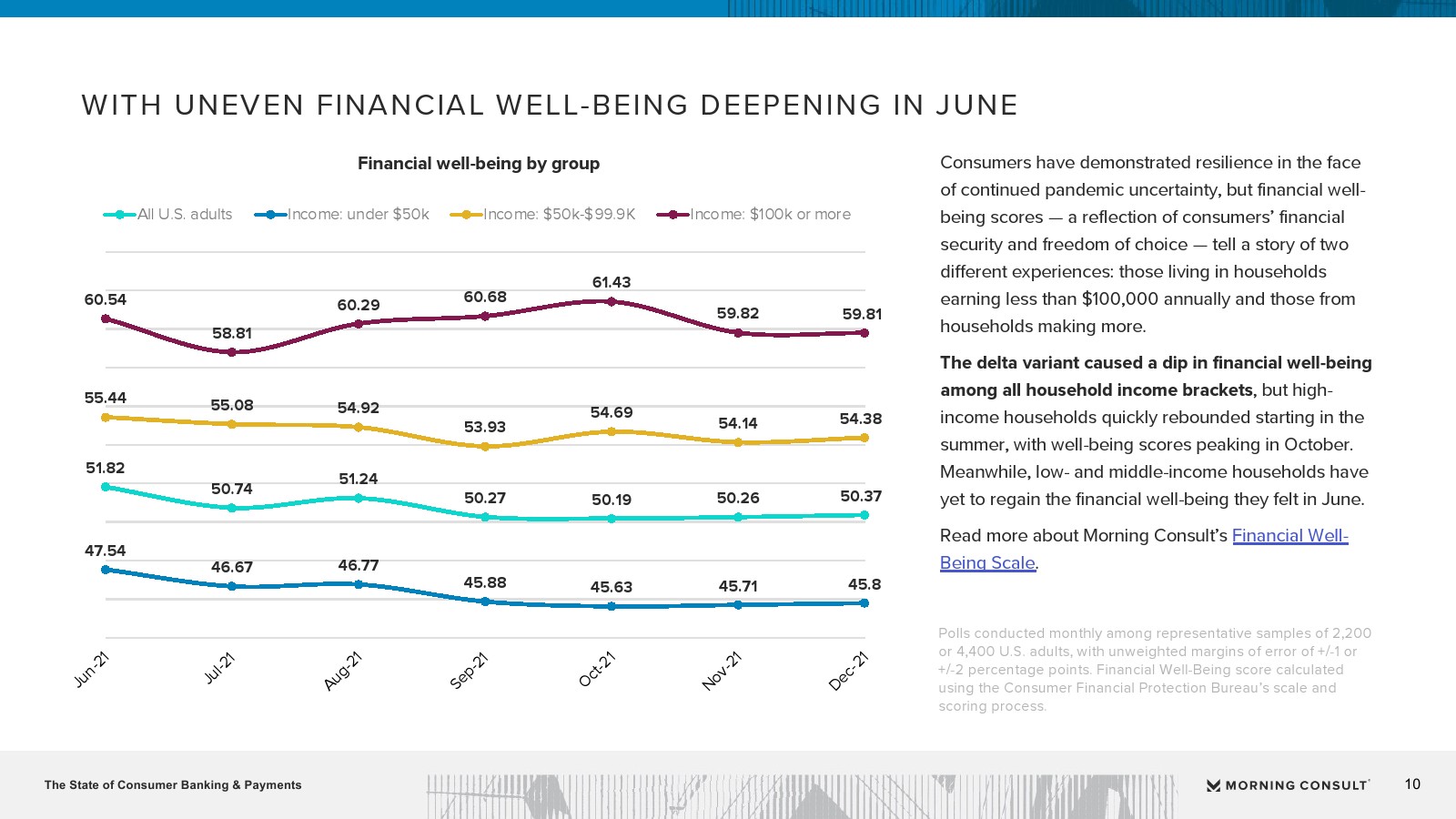 Morning Consult发布了“2022年第一季度个人银行与支付报告”。即使在当前的大流行中,消费者也对他们的金融服务提供商表示满意,很少有人改变这些关系。但在平静的表面之下是财务状况不佳和支付习惯的转变。