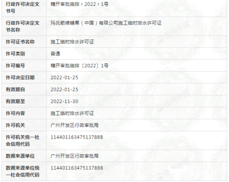 据信用中国显示,2021年4月19日当天,糖果商玛氏箭牌糖果(中国)公司同时被鲁山县市场监督管理局和阜宁县市场监督管理局给予行政处罚,分别罚款7万元和12万元。