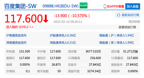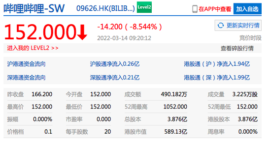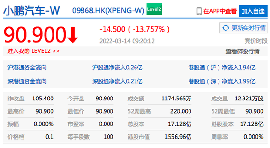 新浪科技讯 3月14日上午消息,香港恒生指数开盘跌1.7%。恒生科技指数跌4.09%续创新低。理想汽车港股开跌超14%,小鹏汽车港股跌超13%,百度跌超10%,京东跌超9%,B站跌超8%。