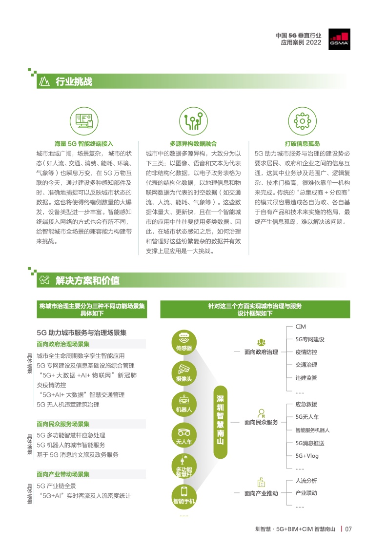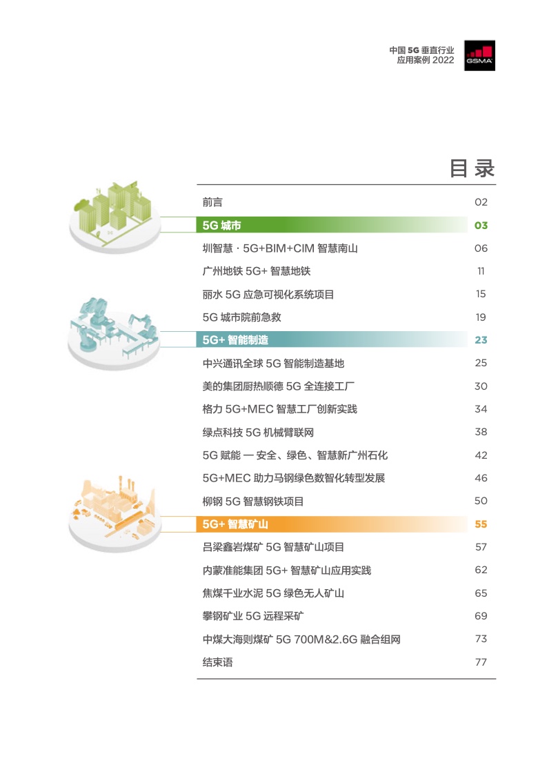 要实现5GtoB的规模化,需要对5GtoB应用场景进行大浪淘沙式的筛选,找到真正对5G有刚需的应用场景,在这些场景中,5G不再是“可选技术”、“替代技术”或者“备份技术”,而是“优选技术”,甚至是“必选技术”。今年,我们做了一个尝试,选择了5G城市、智能制造和智能矿山这三个领域作为5GtoB规模化的突破点,对相关5GtoB典型应用场景进行了分析和筛选,并精选了其中的优秀应用案例向全球推广并推动规模化复制,实现相关领域信息化、自动化向数字化、智能化的转型。