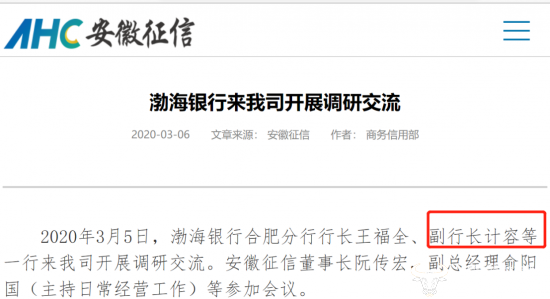值得一提的是,虽然计容正式任职渤海银行合肥分行副行长职位是在2021年1月27日,但是2020年3月的时候他已经开始以副行长的身份出席活动了。