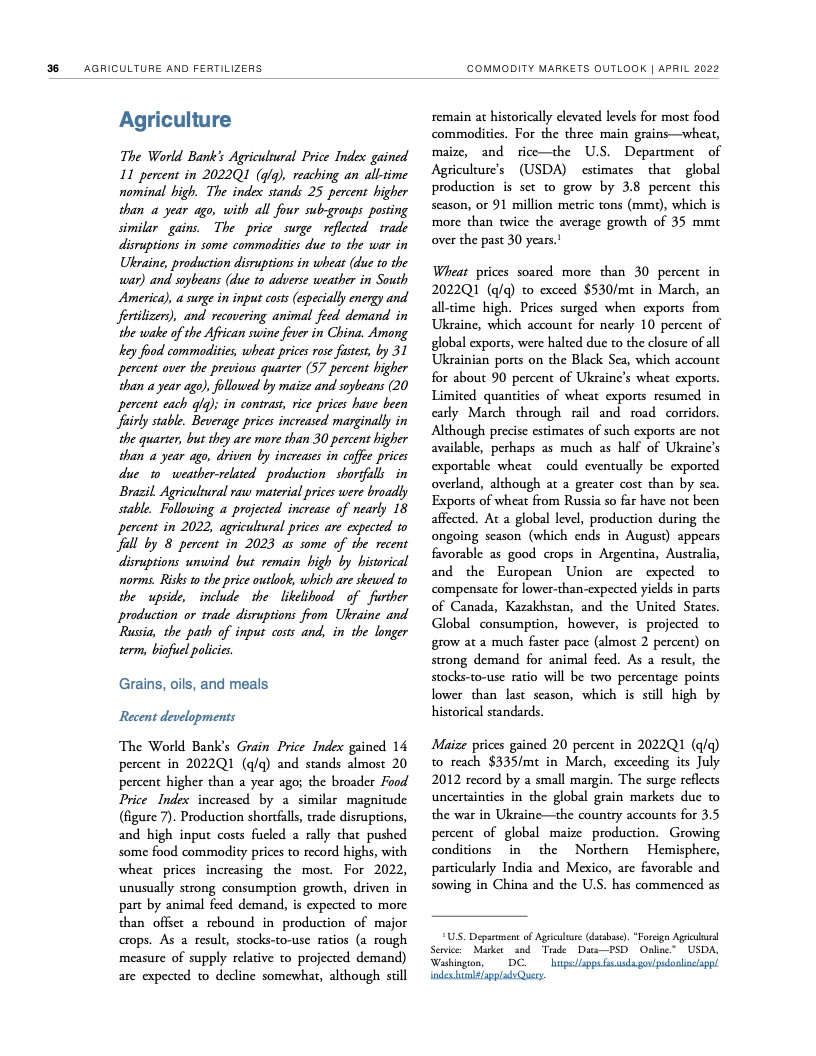报告预计今年小麦价格将上涨 40% 以上,名义价格达到历史最高水平。这将给依赖小麦进口,尤其是从俄罗斯和乌克兰进口小麦的发展中经济体带来压力。预计 2022 年金属价格上涨 16%,然后在 2023 年回落,但仍将保持在较高水平。