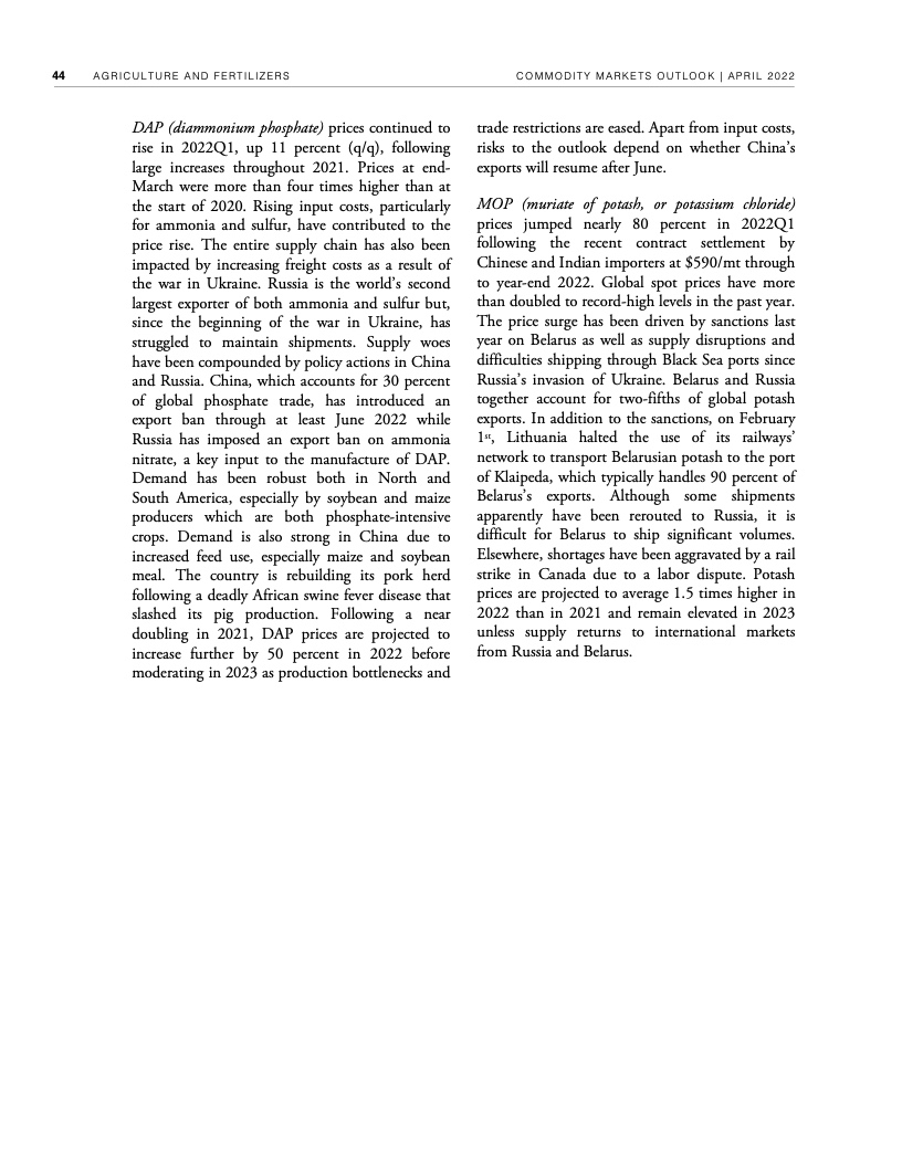 报告预计 2022 年能源价格将上涨 50% 以上,随后在 2023 年和 2024 年回落;包括农业和金属在内的非能源价格预计 2022 年上涨近 20%,此后几年也将回落。尽管如此,预计大宗商品价格仍将保持高位,远高于最近五年的平均水平。如果俄乌冲突旷日持久,则价格水平可能会比目前预测的更高,波动程度更大。