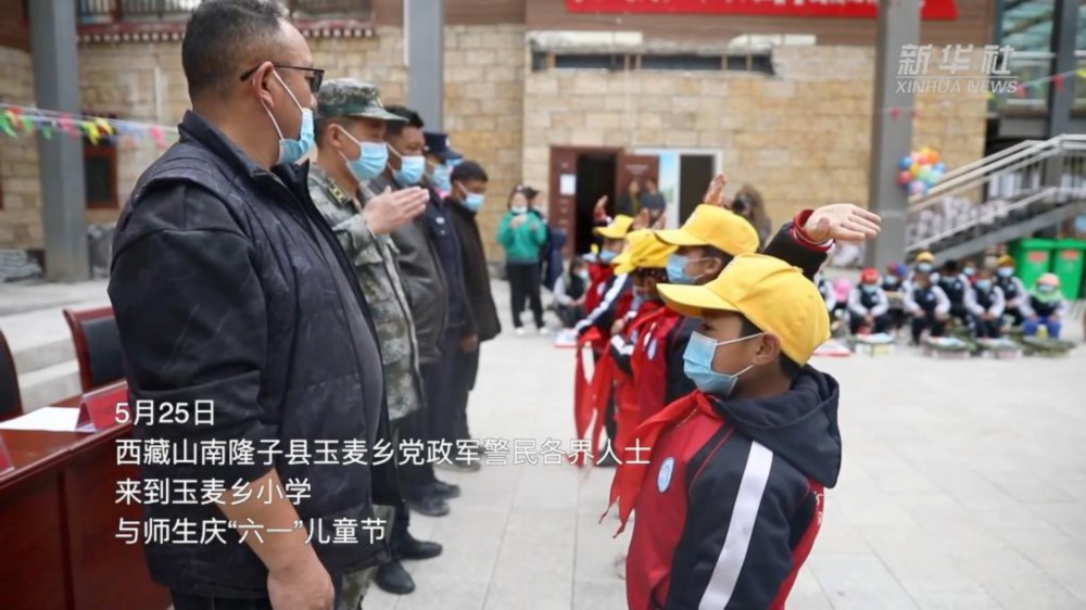 5月25日,西藏山南隆子县玉麦乡党政军警民各界人士来到玉麦乡小学,与师生共庆“六一” 儿童节。