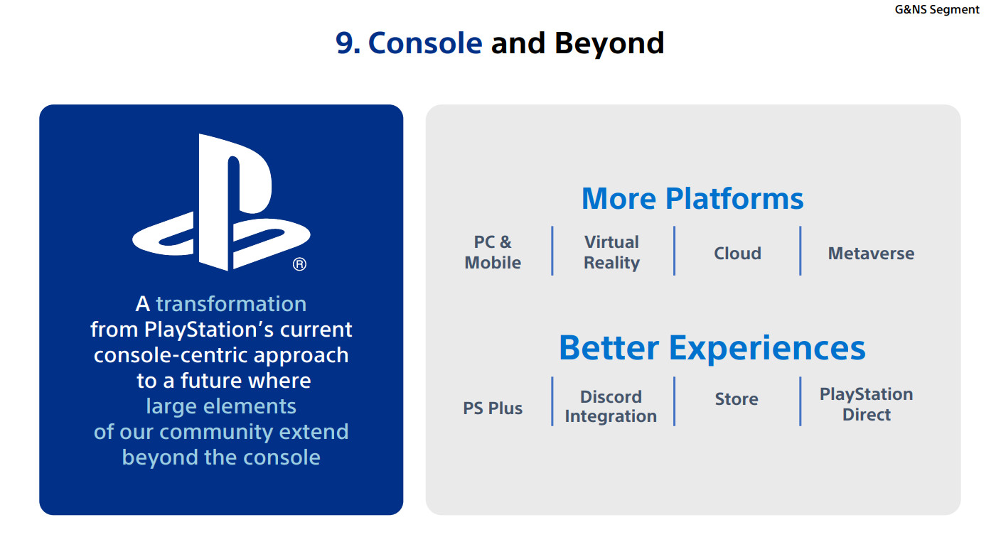 除了主机外,索尼计划进军更多平台,包括PC、手机、VR、云端和元宇宙