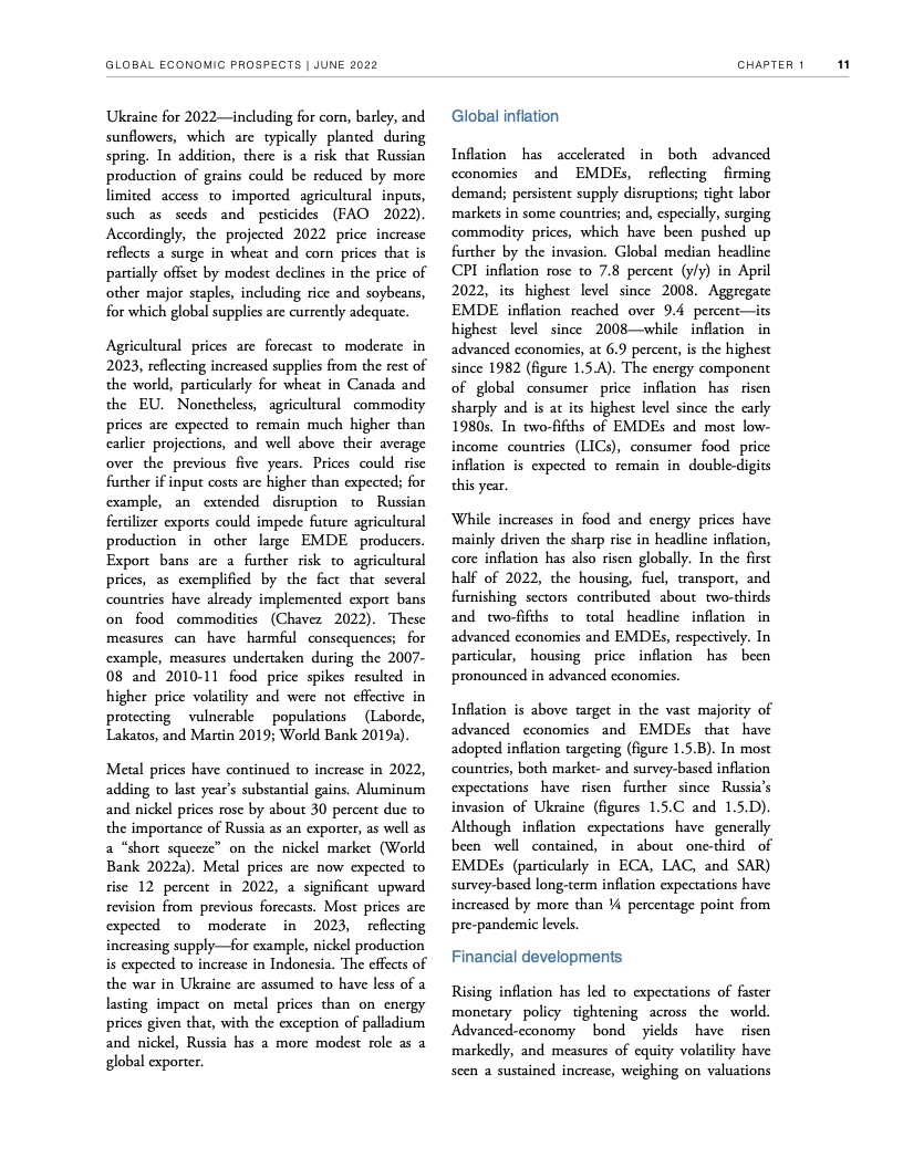 世界银行预测局局长阿伊汗·高斯表示:“发展中经济体必须在确保财政可持续性与减轻当下的多重危机对最贫困人口的影响这两方面保持平衡。清晰地传达货币政策决策、充分利用可靠的货币政策框架并保护央行的独立性可以有效地锚定通胀预期,降低为实现控制通胀、促进经济活动的特定效果而需实行的政策紧缩规模。”