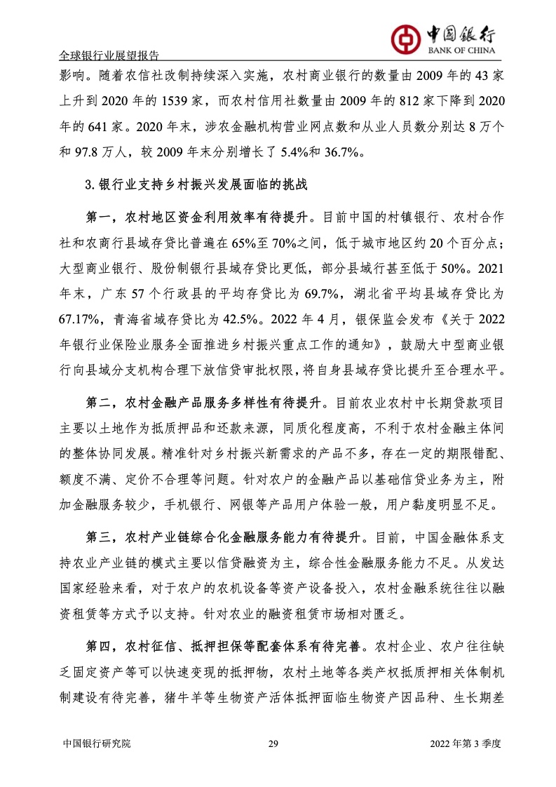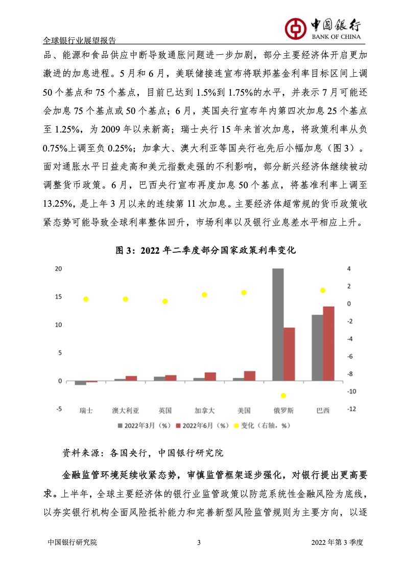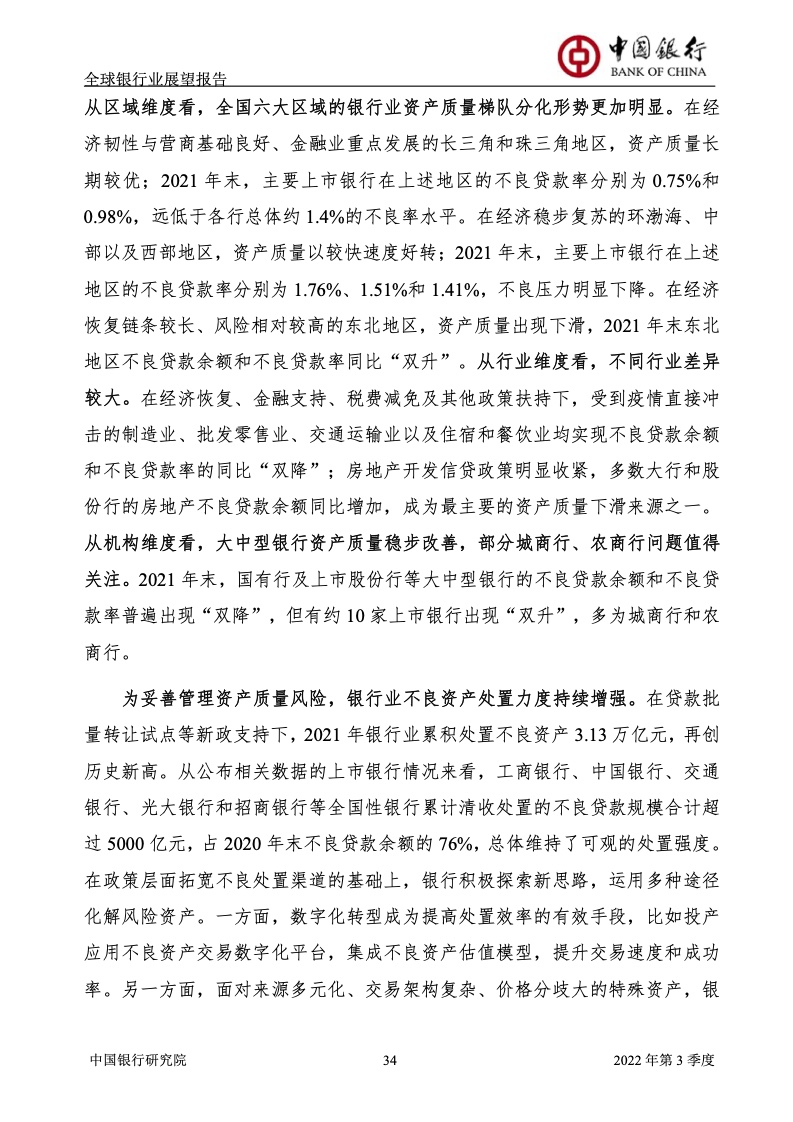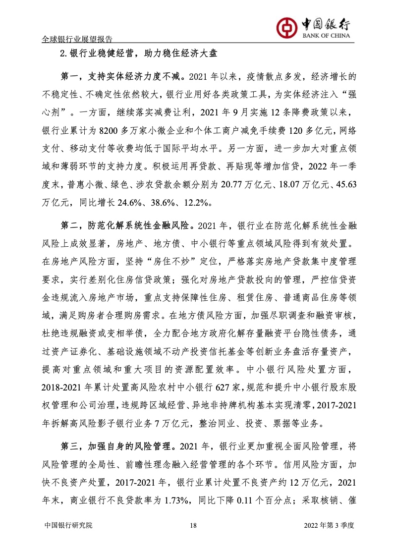 《报告》认为,2022年三季度,全球经济增速下滑,银行业经营环境的不确定性有所上升,规模扩张速度保持平稳,盈利出现分化,可能面临新的风险;中国宏观经济总体向好态势不改,银行业经营稳健,规模持续增长,盈利水平保持高基数下的稳步提升,资产质量良好。
