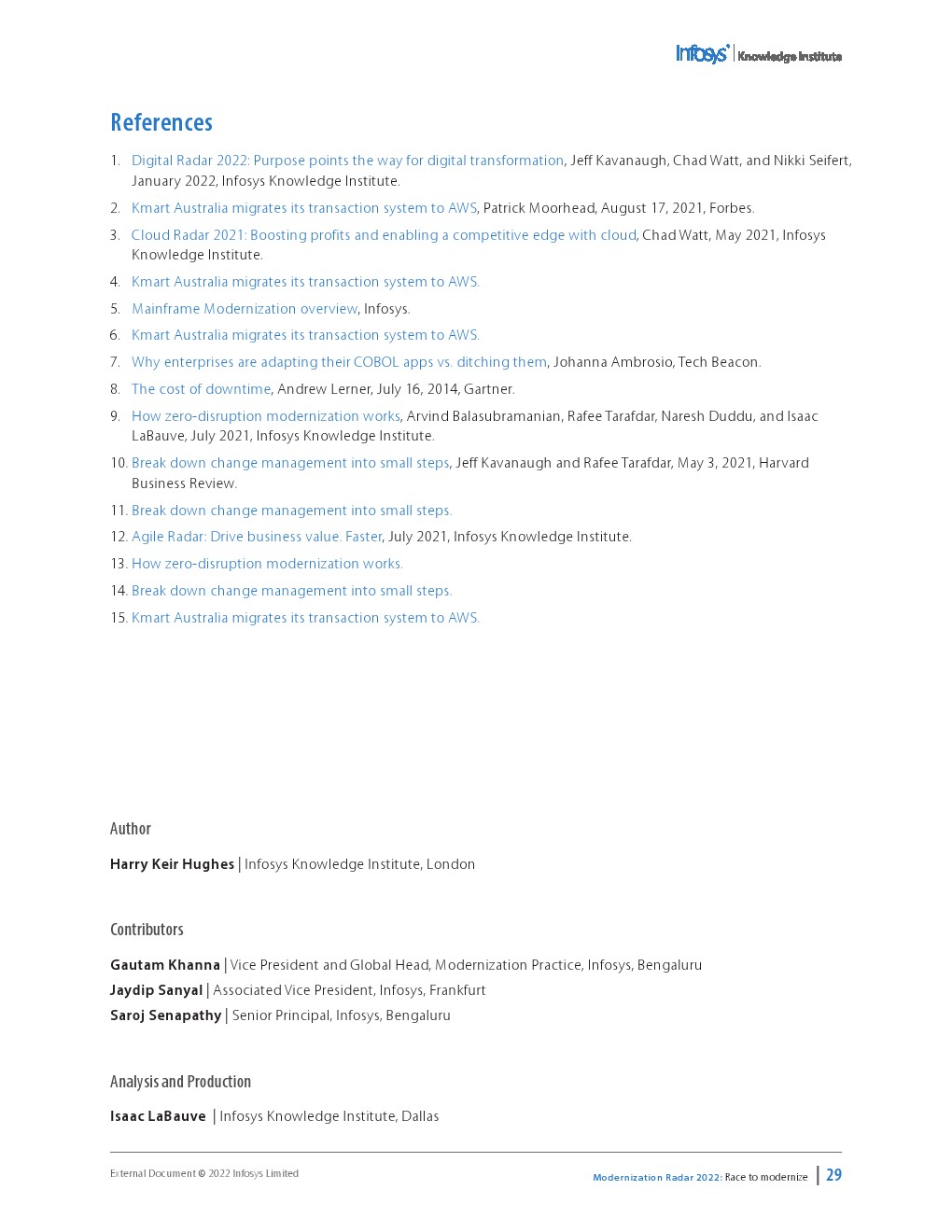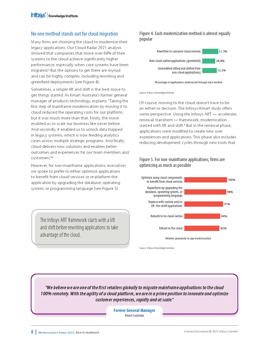 Infosys发布了“2022年现代化雷达报告”。尽管88%的现有技术资产是遗留的,但几乎所有资产都将在未来五年内实现现代化。