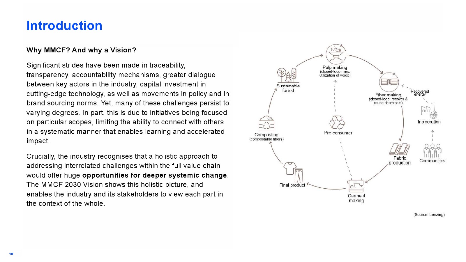 但是,迄今为止,该行业面临着巨大的社会和环境挑战,从与原材料采购相关的森林砍伐和生物多样性影响,到生产过程中的安全化学品使用和劳工权利问题。作为一个处于大规模增长风口浪尖的行业,充分利用 MMCF的潜力的机会窗口很小。