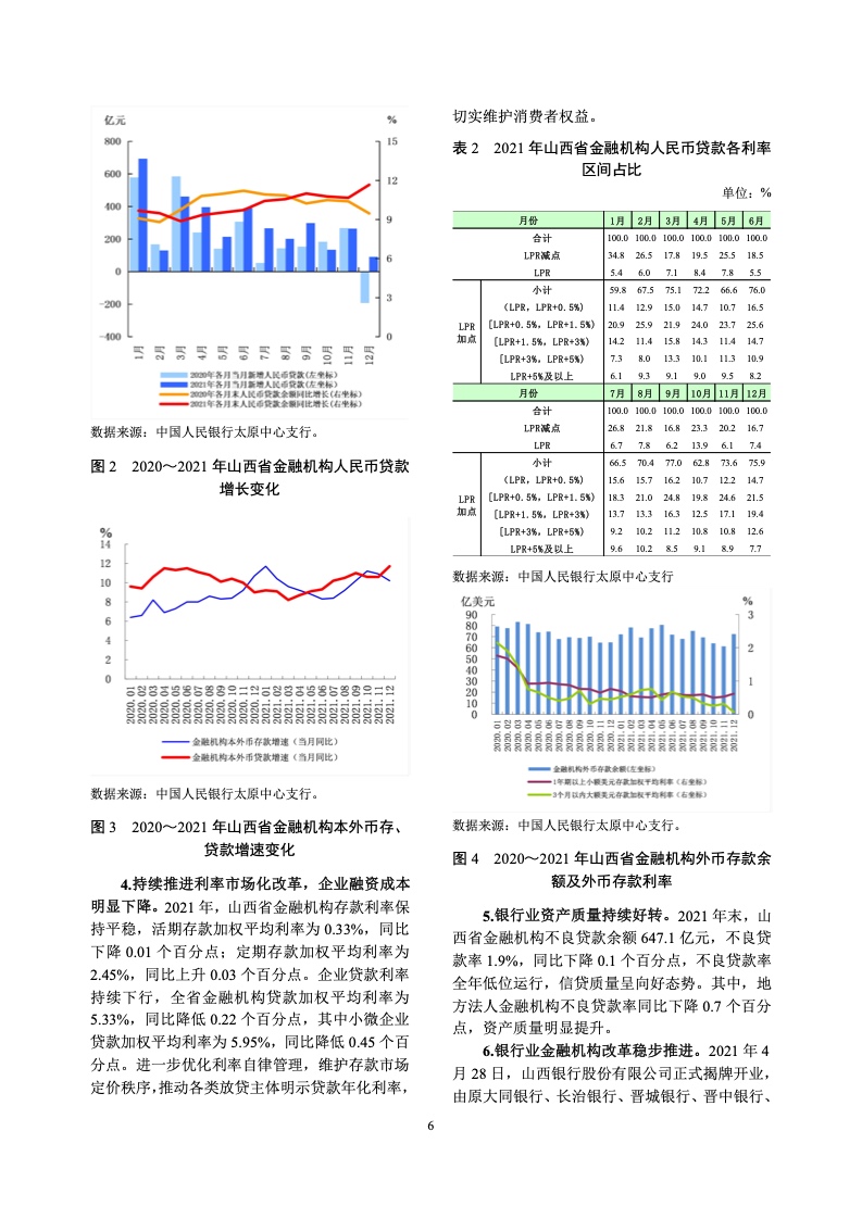 2021 年末,山西省金融机构不良贷款余额647.1 亿元,不良贷款率 1.9%,同比下降0.1 个百分点,不良贷款率全年低位运行,信贷质量呈向好态势。其中,地方法人金融机构不良贷款率同比下降0.7个百分点,资产质量明显提升。
