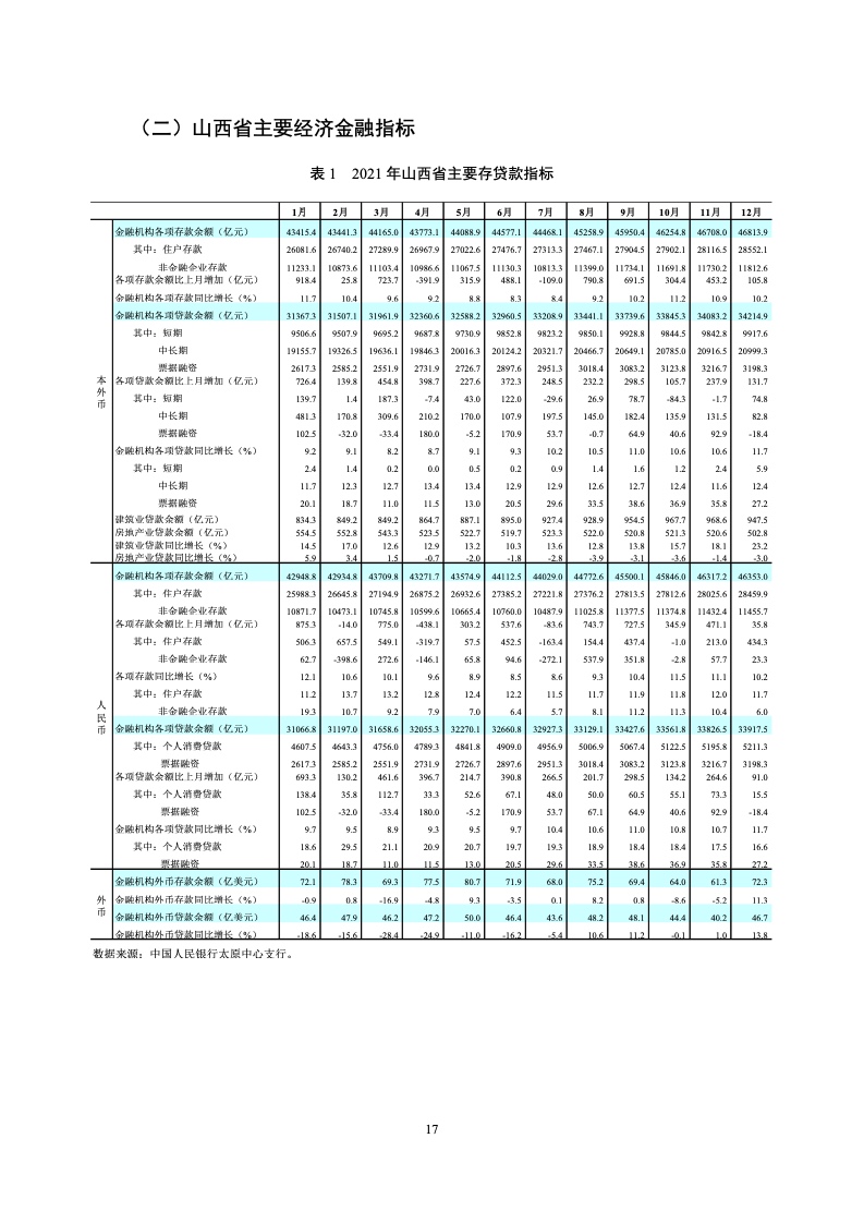 2021 年末,山西省金融机构本外币各项贷款余额34214.9 亿元,较年初增加3574.0 亿元,同比多增 1052.5 亿元;余额同比增长11.7%,高于去年同期 2.7 个百分点。