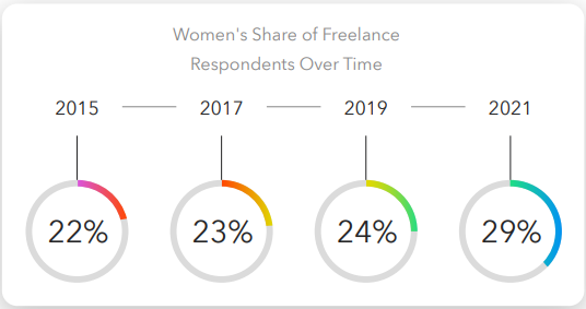 自2020年全球自由职业者收入报告以来,女性参与者已从24%增加到29%。