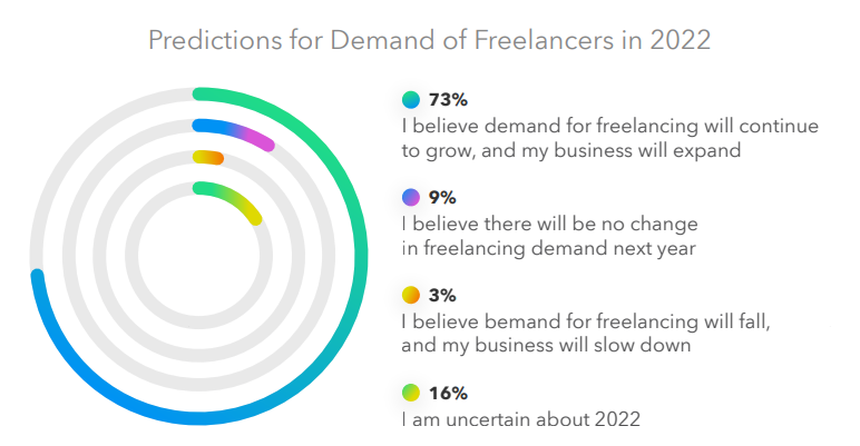 调查表明,不仅大多数自由职业者能够在这些动荡的时期维持其工作和收入水平,而且1/3经历了需求增长,40%的受访者在大流行期间的收入有所上升。