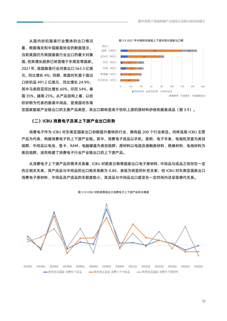 其次,通过 ICBU 对东南亚服装、消费电子上下游产品的出口多次出现增速分化,行业中间品愈发成为东南亚国家跨境产业链的主要需求。
