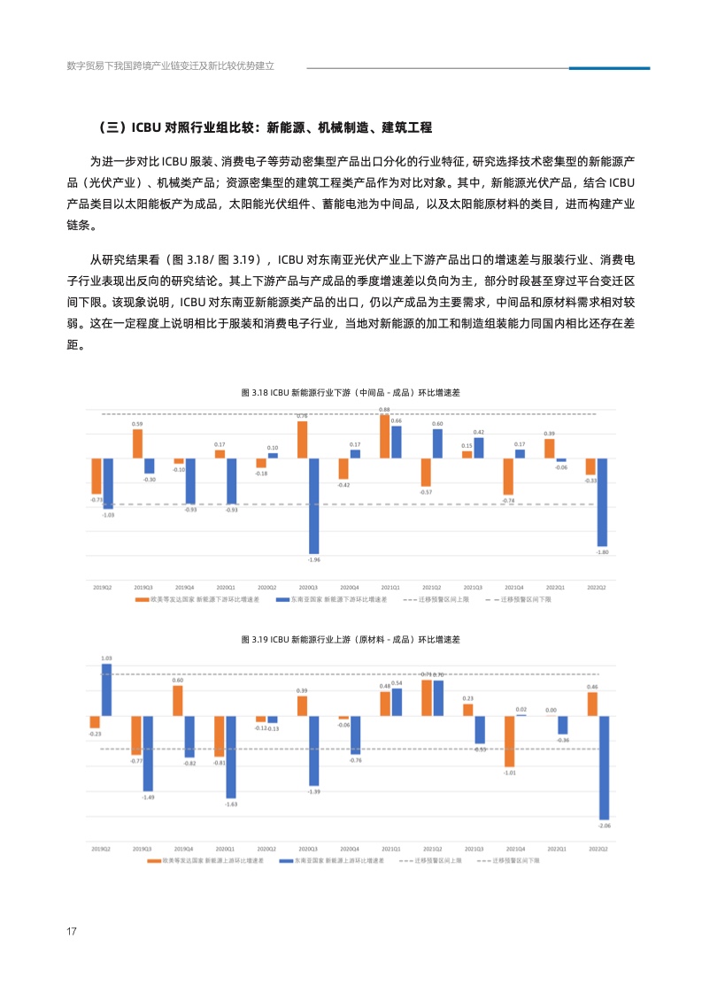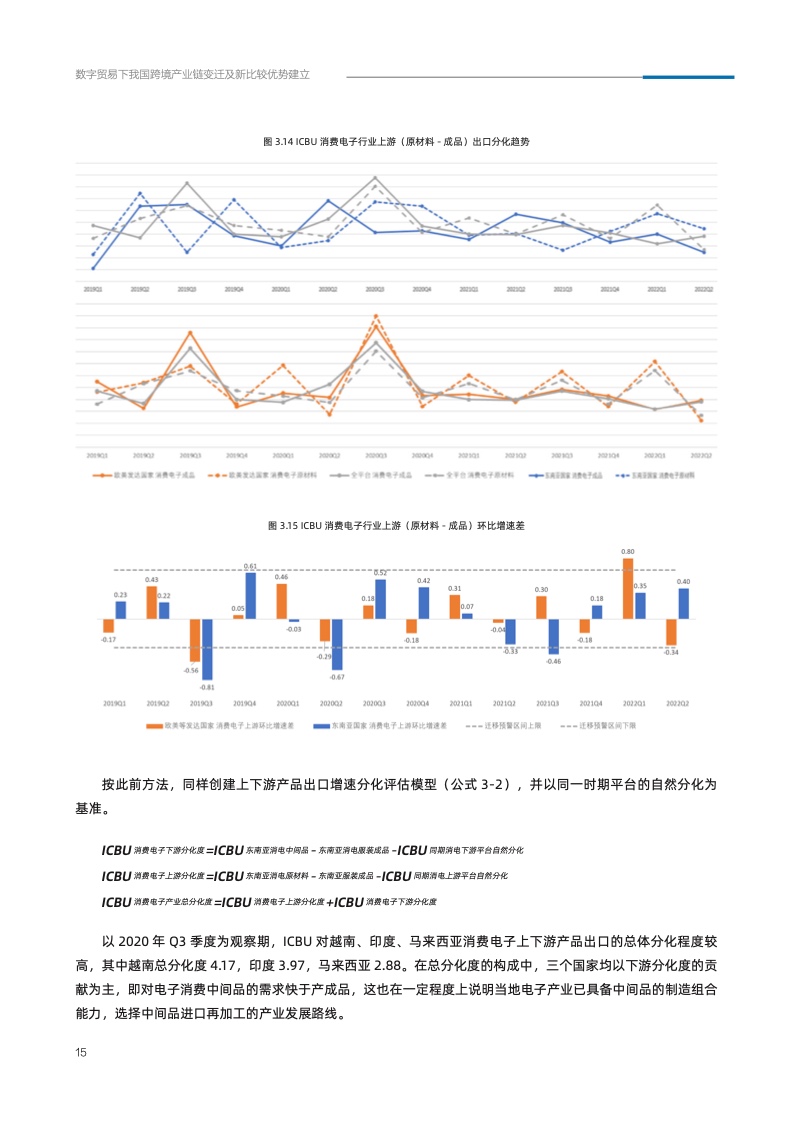 2020年第二季度到2021年第一季度,通过ICBU对东南亚服装下游出口出现明显分化,服装中间品出口快于成品,并超出平台同类品自然分化区间1,而同期通过ICBU对欧美等发达国家服装出口并未出现类似的分化迹象。ICBU消费电子产品同样出现近似情况,且该分化早在2019年就已出现。